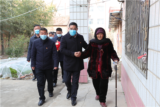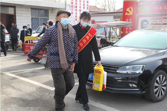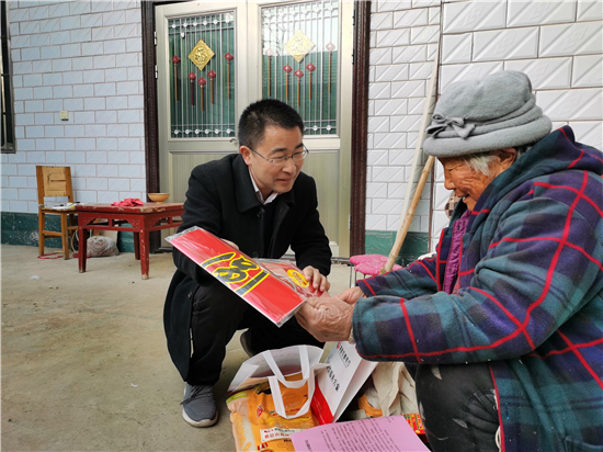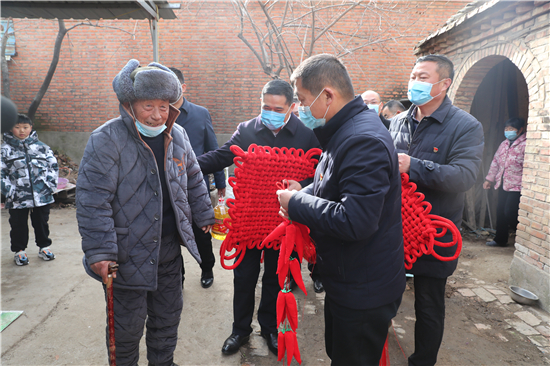 在鄭家集鄉(xiāng)韓樓村,縣農(nóng)商銀行鄭家集支行行長武繼龍帶領員工來到92歲韓老漢的家中,看到韓老漢由于身體原因只能靠拐棍佝僂著背站著,武繼龍緊忙彎腰俯下身說:“大爺,快過年了,我們來看看您,提前給您拜個早年!”“真的是太感謝恁了,這么冷的天,還讓你們來送到家里面?!表n老漢激動地說。