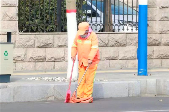 由于新冠肺炎疫情的原因,這個春節(jié)不同往常,環(huán)衛(wèi)工人們在搞好環(huán)衛(wèi)工作的同時,還要注意好疫情防控。當日上午,記者看到,每一名環(huán)衛(wèi)工人不僅全時段佩戴口罩,也會時常提醒路人戴好口罩,注意安全。