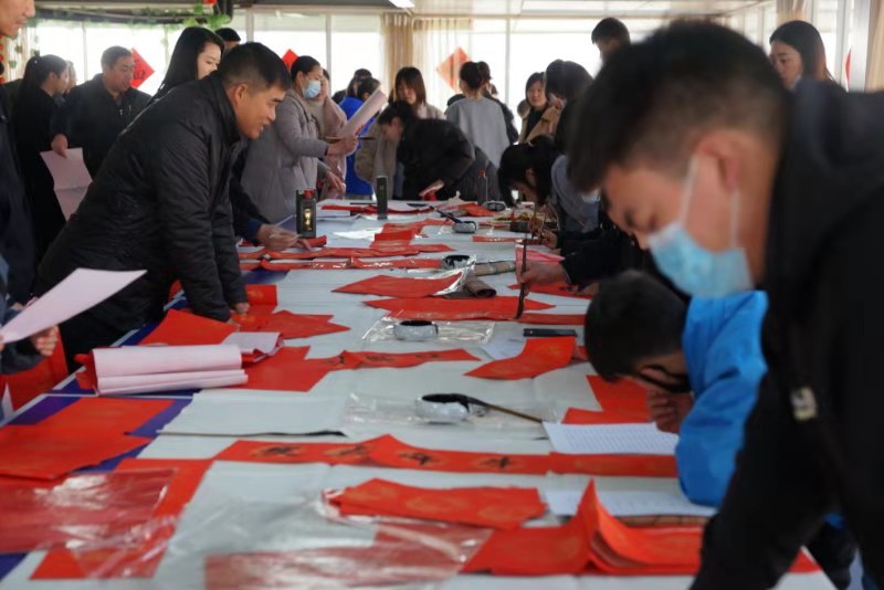 金牛賀歲來祥瑞,翰墨飄香迎新春。為弘揚(yáng)中華傳統(tǒng)文化,落實(shí)“從優(yōu)待警”舉措,傳遞市局黨委的親切慰問和關(guān)心關(guān)懷,豐富警營文化生活,營造歡樂祥和的節(jié)日氛圍,2月9日,項(xiàng)城市公安局在三樓大廳開展書贈春聯(lián)活動,孫沄、閆永紅等5名警營書法家及16名蓮溪書院師生揮毫潑墨,現(xiàn)場為民警、輔警及工作人員義寫春聯(lián)、福字2000余套,受到了廣大民警、輔警的熱烈歡迎和充分好評。