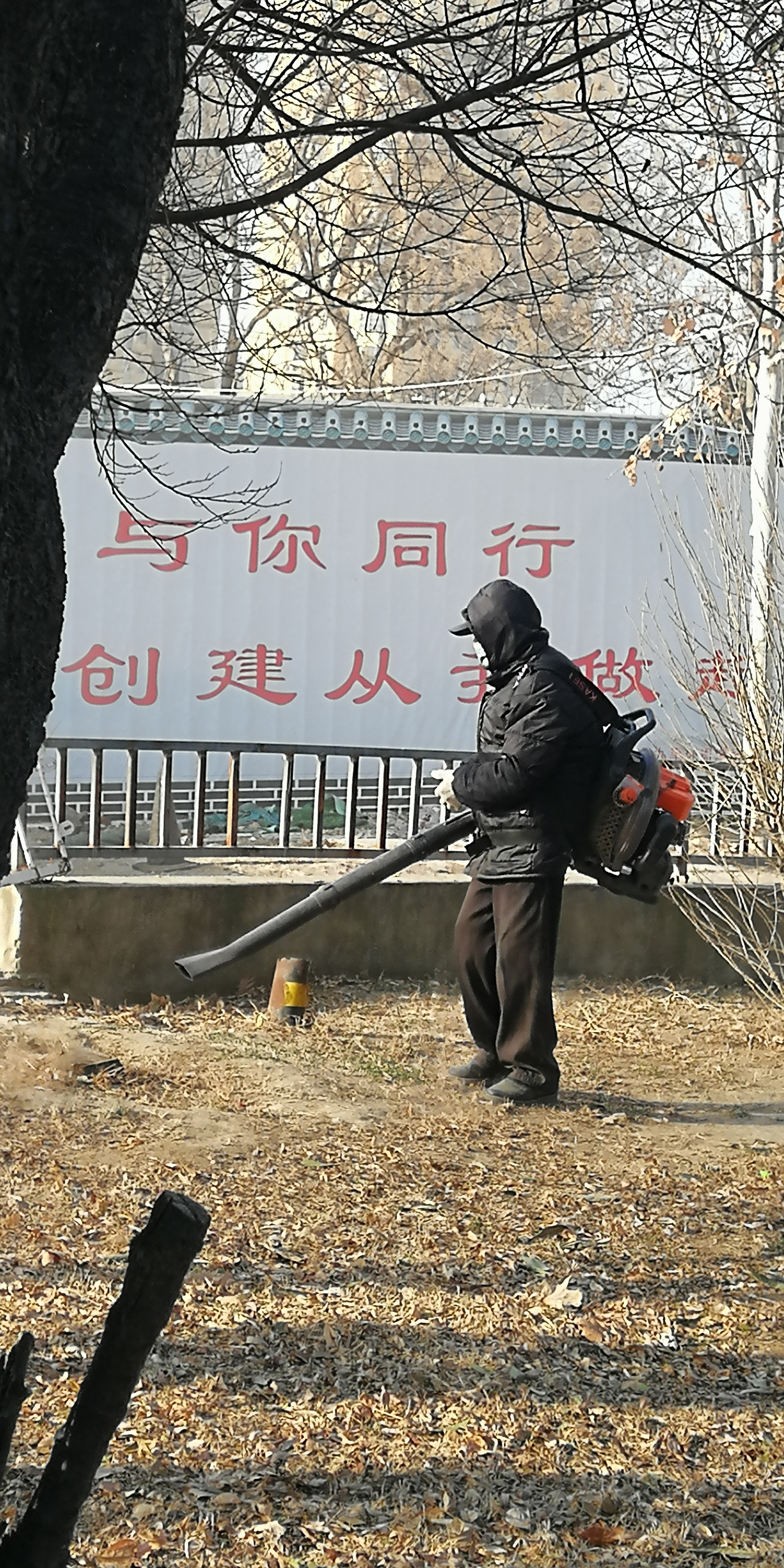 2月11日,大年三十。在川匯區(qū)濱河路上,工作人員背著吹風機清理游園內(nèi)的落葉和垃圾。工作人員介紹,這樣便于更快更好地工作。(周口日報·周道客戶端記者 馬月紅)②7