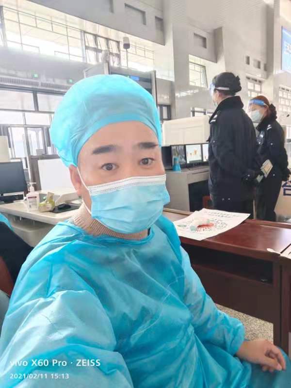 在執(zhí)勤現(xiàn)場(chǎng),當(dāng)記者問(wèn)及除夕夜在這里執(zhí)勤有啥想法沒(méi)?一旁的周文旭搶答說(shuō):“疫情防控是件大事,舍小家顧大家一直以來(lái)就是我們醫(yī)院的辦院宗旨和服務(wù)理念”“今天值班一夜,明天大不了睡一天,也要把工作干好,在崗一分鐘,責(zé)任60秒”王書浩說(shuō)。