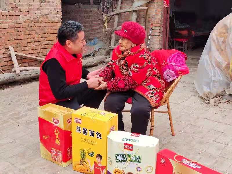 按照中國民間傳統(tǒng)習(xí)俗,新春伊始,人們都要穿戴新衣新帽走親訪友,拜年送祝福。2月12日,農(nóng)歷正月初一一大早,遜母口鎮(zhèn)心連心雷鋒服務(wù)隊隊長張新靜帶領(lǐng)志愿者張建設(shè)、劉賀敬、馮茹愿、賈衛(wèi)蒙、馮柯馨、歐樣等人就敲開了106歲的張占花家門。當日,他們帶著核桃牛奶、面包、八寶粥,專門來為老人來拜年。 “新靜他們來了……”一聽聲音,張占花老人就猜到了是誰。經(jīng)過去年一年的幫扶,張新靜等人已經(jīng)與照顧占花老人成了“熟人”?!斑@些孩子們可沒少幫俺,又送物又幫俺打掃庭院”??吹街驹刚邆兊牡絹?,張占花老人的臉上掛滿笑容。