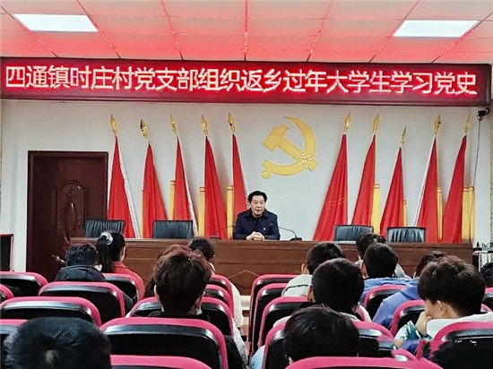 在當日活動中,該村黨支部書記時興榮帶領(lǐng)返鄉(xiāng)大學(xué)生參觀時莊村中共黨史館,并為他們現(xiàn)場講解中國共產(chǎn)黨從一大到十九大的黨史歷程,隨后他們又一起前往時莊黨校進行學(xué)習(xí)。“之前我們沒有學(xué)過黨史,也不太了解黨史,通過今天這一課,我們才真正了解到我黨的發(fā)展歷史。作為新時代的大學(xué)生,學(xué)業(yè)有成后,我們一定要報效祖國,一定要不忘初心、牢記使命,為中華民族的復(fù)興努力奮斗作出貢獻,堅決做到聽黨話、跟黨走、報黨恩。”參加活動的大學(xué)生時曼銀說。