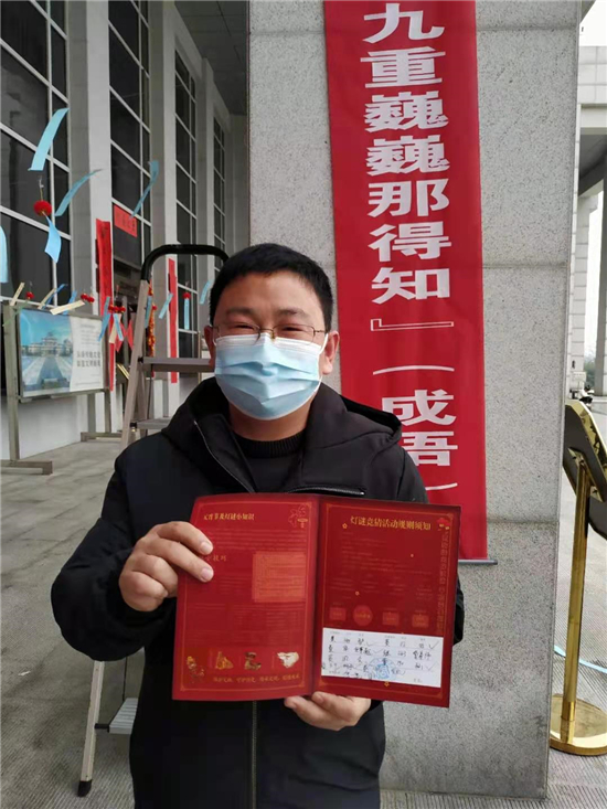 下午首開的一條一等獎燈謎是“九重巍巍那得知(打一成語)”,大家競猜中,安先生帶著家人搶先猜中謎底,高喊為“天子門生”。因謎意難度大,羅營東現(xiàn)場釋難,解釋謎面,他說“九重巍巍"指的是“天宮的意思,這里指皇宮門庭威嚴,乃禁地之所,不可逾越”,“那得知”是“生”的意思,所以謎底為“天子門生”。大家頓足不輟,自悔沒有想到位。在第三條一等獎謎語“甲子(打一個中央電視臺節(jié)目)”揭開,“第一時間”,竟有四人同時舉手猜中,誰是最終的勝者,評判人員讓他們現(xiàn)場各自陳述謎面,以準確程度定輸贏,羅營東現(xiàn)場解說‘“甲子”是我國古老的紀年文化,甲在天干紀年法中排第一位,子在地支紀年法中也是排第一位,是中央電視的“第一時間”謎面的謎底。最終,來自華耀城辦事處朱莊村的殷有軍解說的謎底與專家的相符成為勝者。