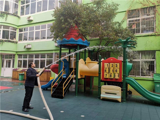 2月27日下午, 周口市市直幼兒園聯(lián)系周口市藍(lán)天救援隊(duì)專業(yè)消殺人員,對幼兒園的公共區(qū)域環(huán)境、大型玩具、走廊、活動(dòng)室等場所逐步實(shí)施消殺,重點(diǎn)對樓道、樓梯扶手、衛(wèi)生間等關(guān)鍵區(qū)域?qū)嵤┟芗?,做到全面、徹底、不留死角?/p>