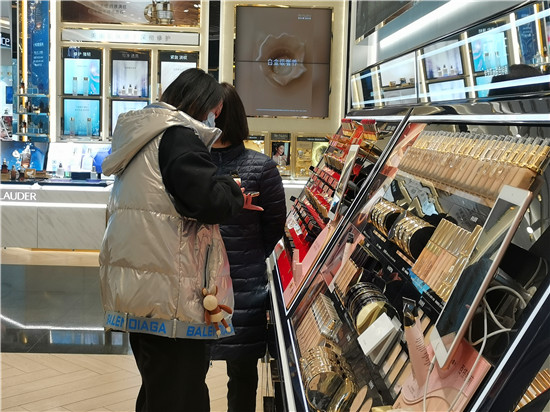 “精致的生活需要儀式感,把自己打扮得漂漂亮亮的,是對(duì)自己的關(guān)愛?!痹谝簧虉龅幕瘖y品專柜前,一對(duì)正在選購化妝品的母女說。