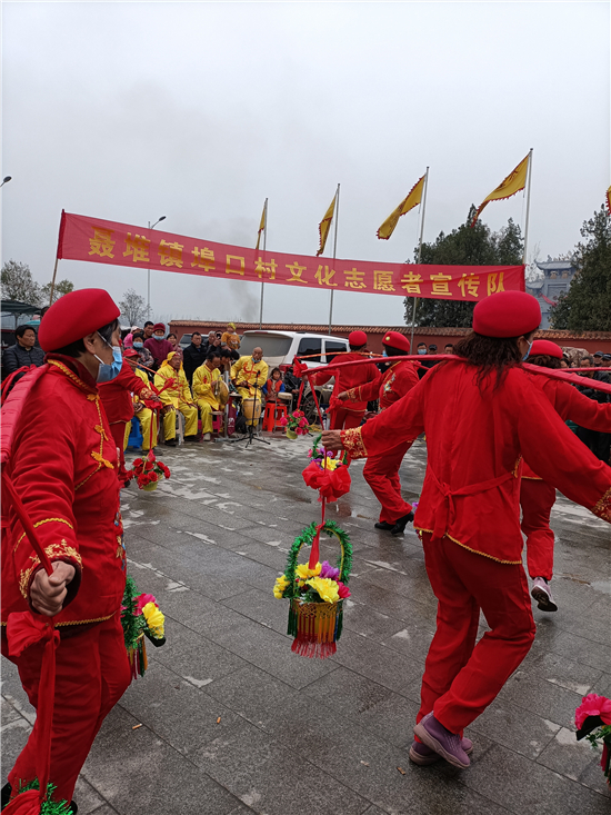 二月二,龍?zhí)ь^。3月14日,西華縣女?huà)z城門(mén)前的廣場(chǎng)上,寫(xiě)著“聶堆鎮(zhèn)埠口村文化志愿者宣傳隊(duì)”的紅色條幅前吸引了眾多游人。這些志愿者們用群眾喜聞樂(lè)見(jiàn)的舞獅、戲曲等傳統(tǒng)文藝節(jié)目,自編自演脫貧攻堅(jiān)給村民們帶來(lái)的新變化,宣傳黨的富民政策,鼓勵(lì)大家參與到鄉(xiāng)村振興工作中。