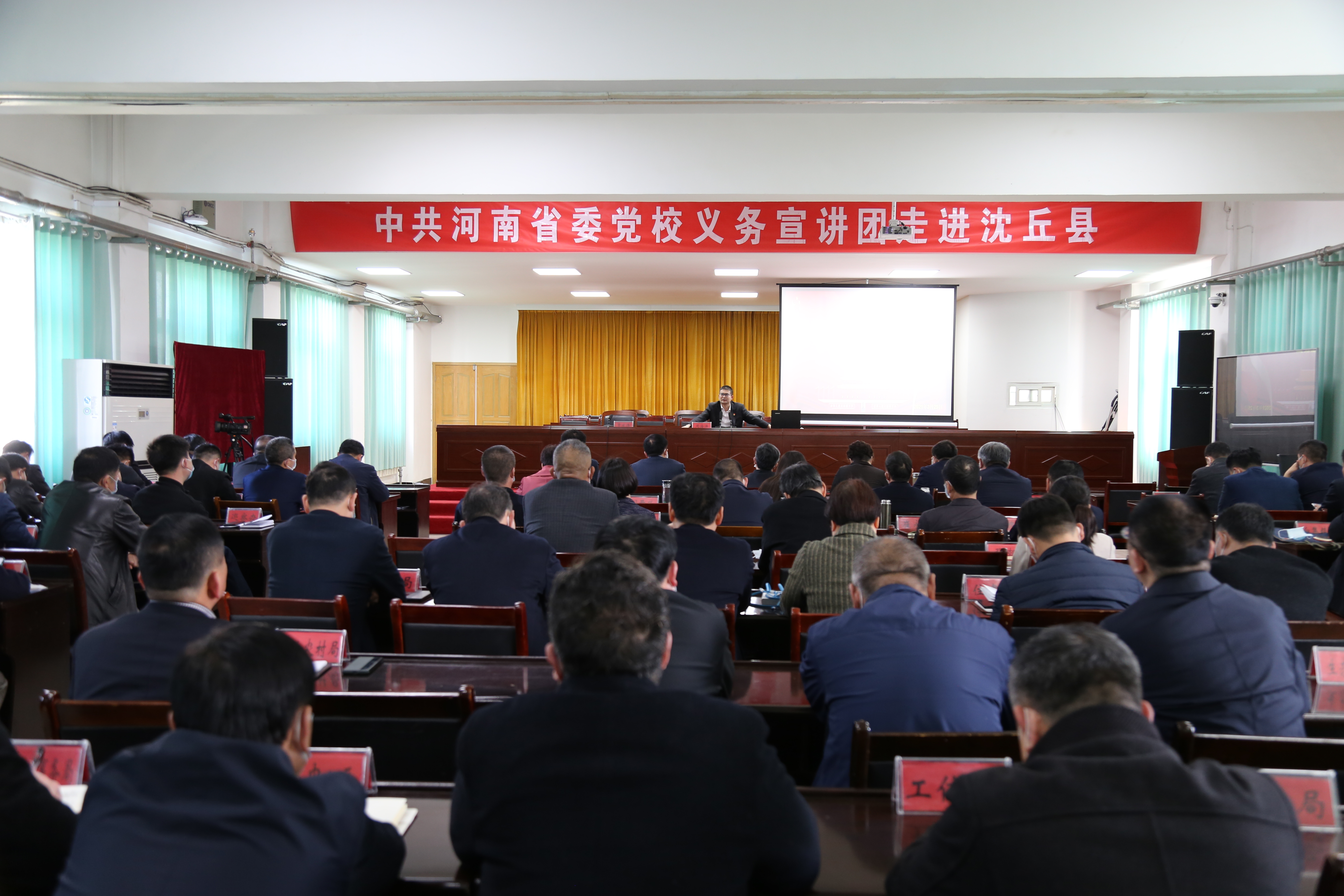 3月25日下午,中共河南省委黨校義務(wù)宣講團走進沈丘縣開展宣講活動?;矢α⑿隆①Z慶偉、殷曉春、趙振、郝四春、劉和輝、呂孝坤等在家的縣四個班子領(lǐng)導(dǎo)及副處級以上干部與全縣近200余名黨員干部共同聆聽了宣講報告??h委副書記賈慶偉主持報告會。