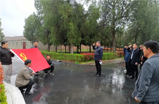在五七干校舊址,大家通過觀看館內(nèi)大量留存的圖片、文字、實(shí)物等珍貴資料,再現(xiàn)了老一輩黨員干部在困境中堅(jiān)持服務(wù)基層、服務(wù)百姓的感人場(chǎng)景,受到了一次鮮活的革命傳統(tǒng)教育和精神洗禮。紛紛為“五七”干校干部職工身處逆境樂觀向上、艱苦奮斗的精神點(diǎn)贊。隨后,在鮮紅的黨旗下,大家莊嚴(yán)地舉起右拳,重溫了入黨誓詞。