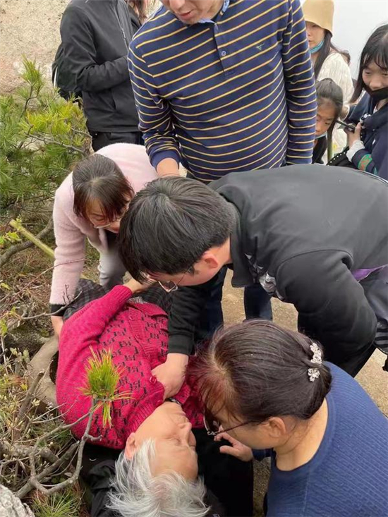 大河網(wǎng)訊 5月3日13點(diǎn)35分左右,周口市兒童醫(yī)院醫(yī)生趙一品在游覽洛陽(yáng)白云山景區(qū)的途中,遇到一位突發(fā)疾病暈倒的老太太。聽(tīng)到家屬呼救,趙一品迅速來(lái)到暈倒的老太太身邊,協(xié)助家屬清理了老太太口中的食物殘?jiān)尣∪似教傻却仍?/span>
