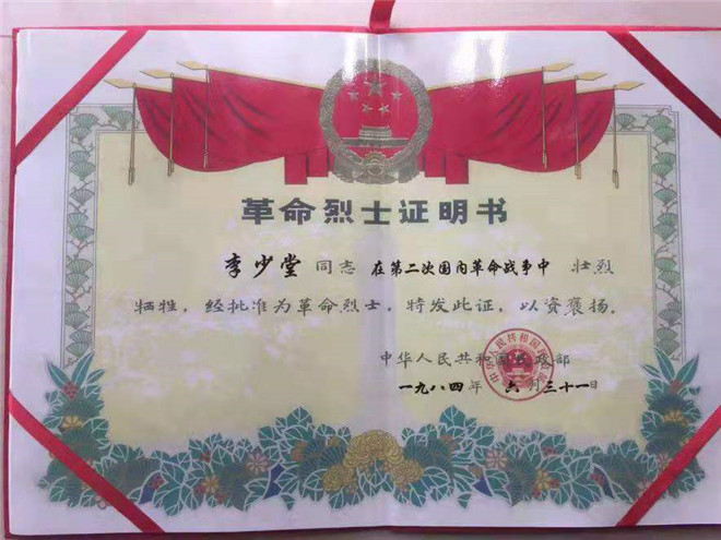 新中國成立后,李少堂的孫子才聯(lián)系上了李少堂曾經的革命戰(zhàn)友惠浴宇同志。時任江蘇省省長的惠浴宇同志得知消息后,親寫證明遞交黨中央,這才證實了李少堂的身份。