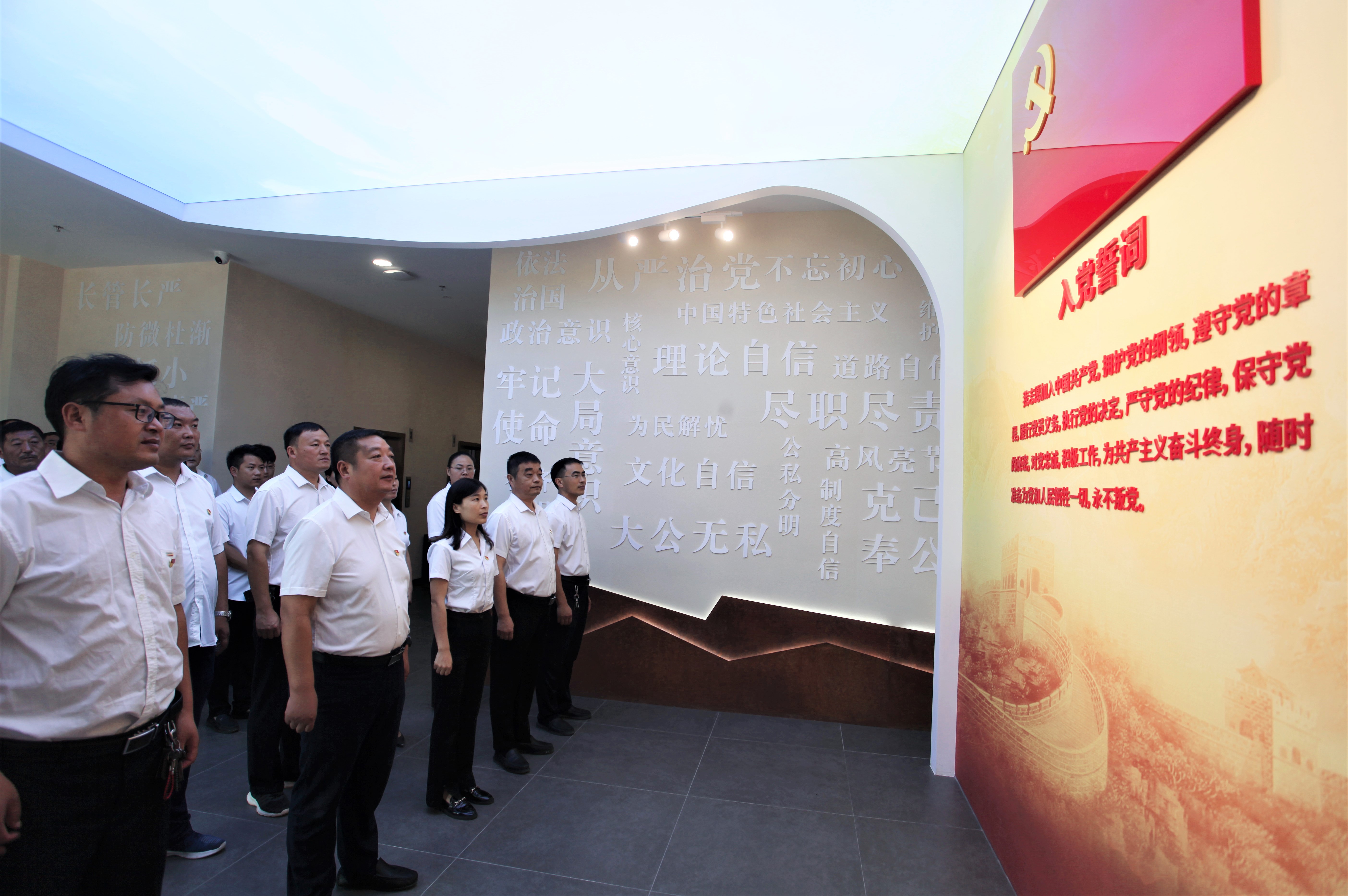 在入黨誓詞展示墻前,全體黨員干部胸前佩戴黨徽,神情莊重、精神飽滿,高舉右拳,重溫入黨誓詞,回顧初心使命。鏗鏘有力的誓言響徹現(xiàn)場(chǎng)。③8