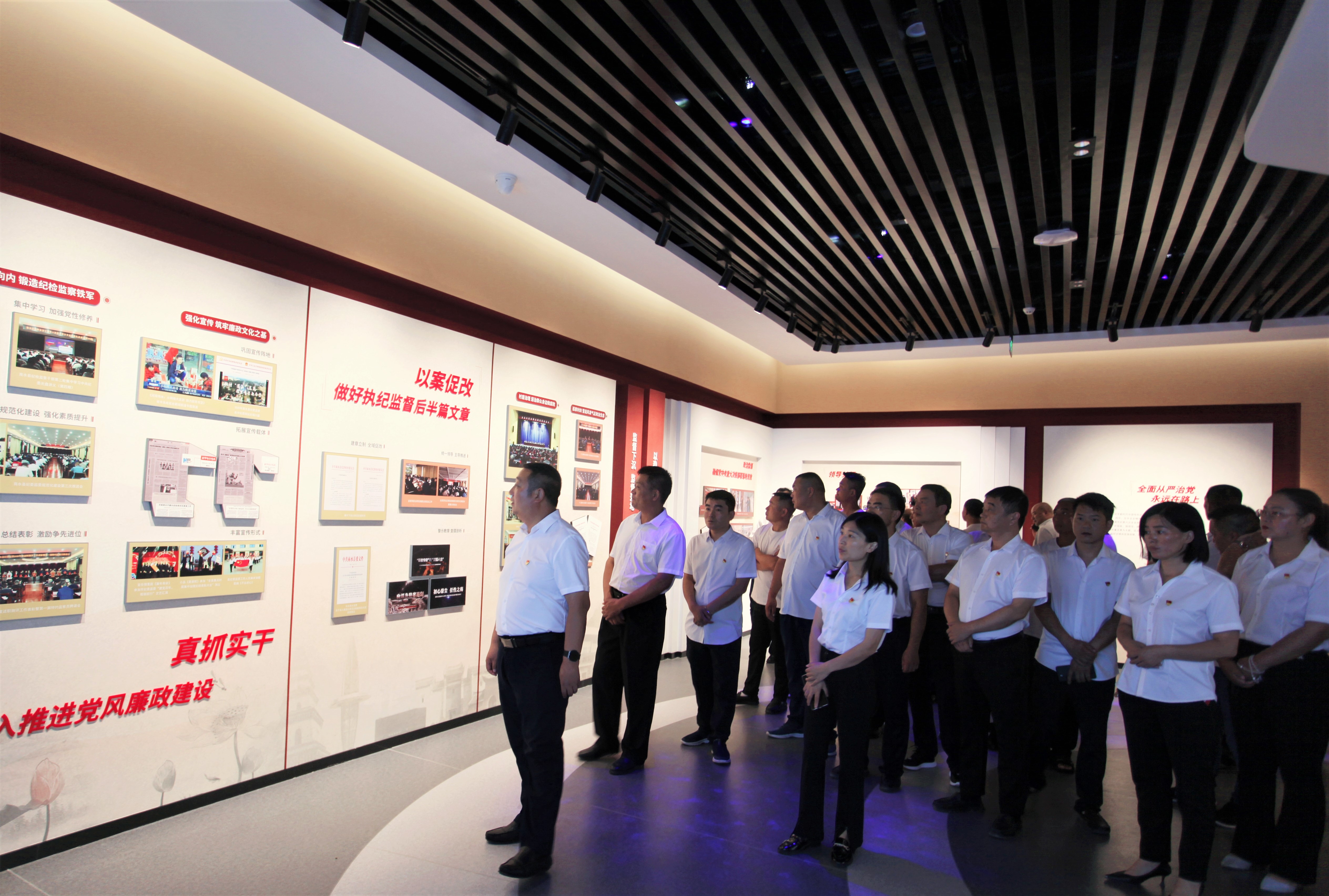 在講解員的帶領(lǐng)下,參觀人員認(rèn)真觀看了每一塊展板、每一張圖片、每一段視頻。廉政警示教育展廳內(nèi)綜合運(yùn)用圖文、場(chǎng)景再現(xiàn)、互動(dòng)體驗(yàn)及多媒體聲光電等形式,從歷史的深度展示了中國(guó)共產(chǎn)黨歷次黨代會(huì)不斷加強(qiáng)紀(jì)律建設(shè)、全面從嚴(yán)治黨的偉大歷程,又展示了黨的十八大以來(lái)查處的各級(jí)領(lǐng)導(dǎo)干部嚴(yán)重違紀(jì)違法和群眾身邊的“微腐敗”案例等,將廉政文化教育、反面典型教育、理想信念教育結(jié)合在一起,形式多樣,內(nèi)容豐富,既有警示又受教育。
