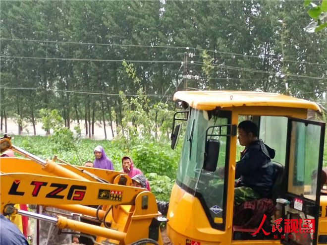 雨越下越大,衛(wèi)河水位持續(xù)上漲,永康段因前期澆地破開的口由于水流量過大,出現(xiàn)缺口,群眾的生命財(cái)產(chǎn)安全受到了威脅,河上巡邏的村干部發(fā)現(xiàn)衛(wèi)河一處排污口不斷往外涌水,立即報(bào)告給張乾書記,此時(shí),張乾家中剛做好午飯,張書記把碗往桌上一放,還沒來得及吃一口,穿著雨衣就沖出門外,趕到現(xiàn)場(chǎng),看到情況十分緊急,千鈞一發(fā)之際,他不顧危險(xiǎn),大喊一聲“我來!大家把沙袋遞給我!”縱身跳入湍流的河中,只見他佝僂起身體,降低重心,以防被急流沖倒,一邊等著岸上接力過來的沙袋,在他抬頭等著接沙袋的時(shí)候,雨水打得他的眼睛都睜不開,他瞇著眼睛將一袋袋沙袋壘到衛(wèi)河封堵口,成功封堵缺口。經(jīng)過一夜的努力,和此時(shí),已經(jīng)夜里四點(diǎn)鐘,張書記全身濕透,雙腿被冷水泡得瑟瑟發(fā)抖,剛被人拉上岸,又有人來說共產(chǎn)主義渠永康段又出現(xiàn)決堤。張乾書記二話沒說,又號(hào)召村上幾十人,立即趕到現(xiàn)場(chǎng),指導(dǎo)防汛人員進(jìn)行搶險(xiǎn)?!跋韧跍?,趕緊把水排掉,如果大堤經(jīng)過長時(shí)間的浸泡,極容易形成塌方。”仔細(xì)觀察險(xiǎn)情后,張乾趕緊吩咐道。為了填大堤,他親自開著鏟車填放沙袋,但是由于大堤被水沖垮,已經(jīng)承受不住鏟車的重量,此時(shí),他反應(yīng)迅速,趕緊倒車返回岸上,幸好沒有掉入河中,隨即又發(fā)動(dòng)村內(nèi)群眾開來自家的兩輪、三輪車?yán)^續(xù)王河堤上面運(yùn)送沙袋,但是由于水流量太大,杯水車薪,又聯(lián)系鎮(zhèn)上的領(lǐng)導(dǎo),協(xié)調(diào)了周邊村莊的黨員群眾一起,經(jīng)過連夜奮戰(zhàn),終于將決堤處堵住。