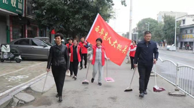 10月11日,西華縣人大常委會(huì)主任周曉燕帶領(lǐng)機(jī)關(guān)工作人員,深入分包區(qū)域的街道社區(qū)積極開(kāi)展“創(chuàng)衛(wèi)”工作。