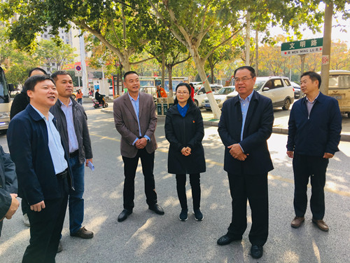 11月6日上午,市政協(xié)副主席、黨組副書記楊珺來(lái)到分包的育新街(文明路至大慶路段),督導(dǎo)“創(chuàng)衛(wèi)”工作。