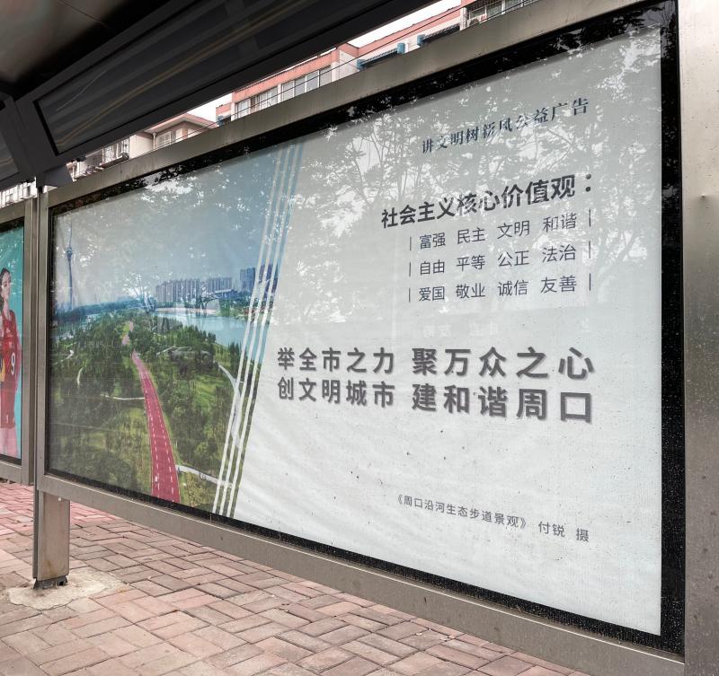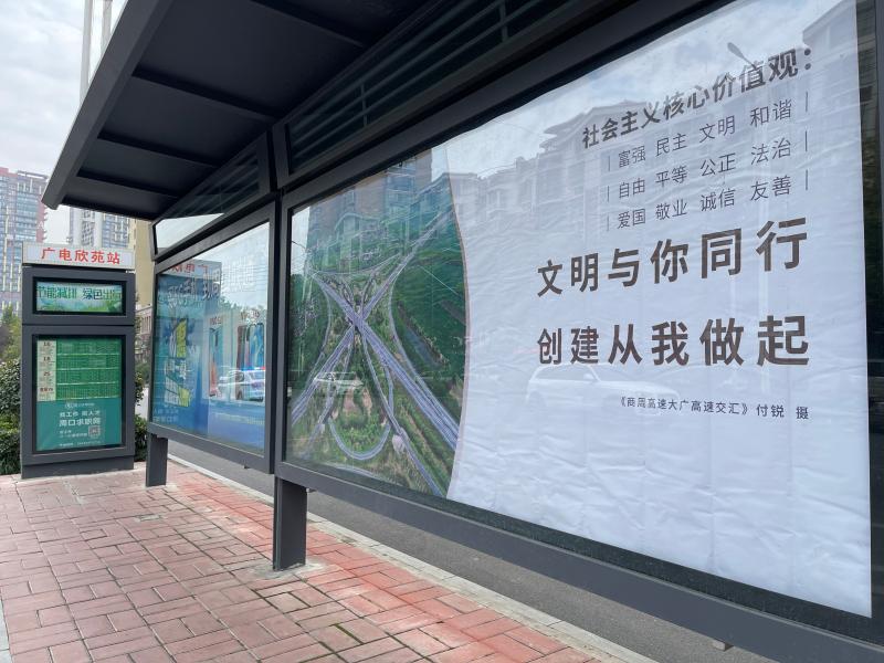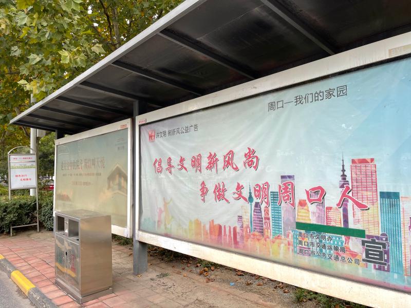 周口市公交總公司總經(jīng)理助理朱懷彬表示,為確保文明標語能讓市民抬眼可見、駐足即觀,目前,我市中心城區(qū)公交候車臺的公益廣告牌投放覆蓋率已超過50%?!盁ㄈ灰恍碌墓徽九_,既扮靚了周口的城市面貌,提升了市民的出行體驗,又潛移默化地把社會主義核心價值觀根植于市民內(nèi)心?!敝鞈驯蛘f。②10