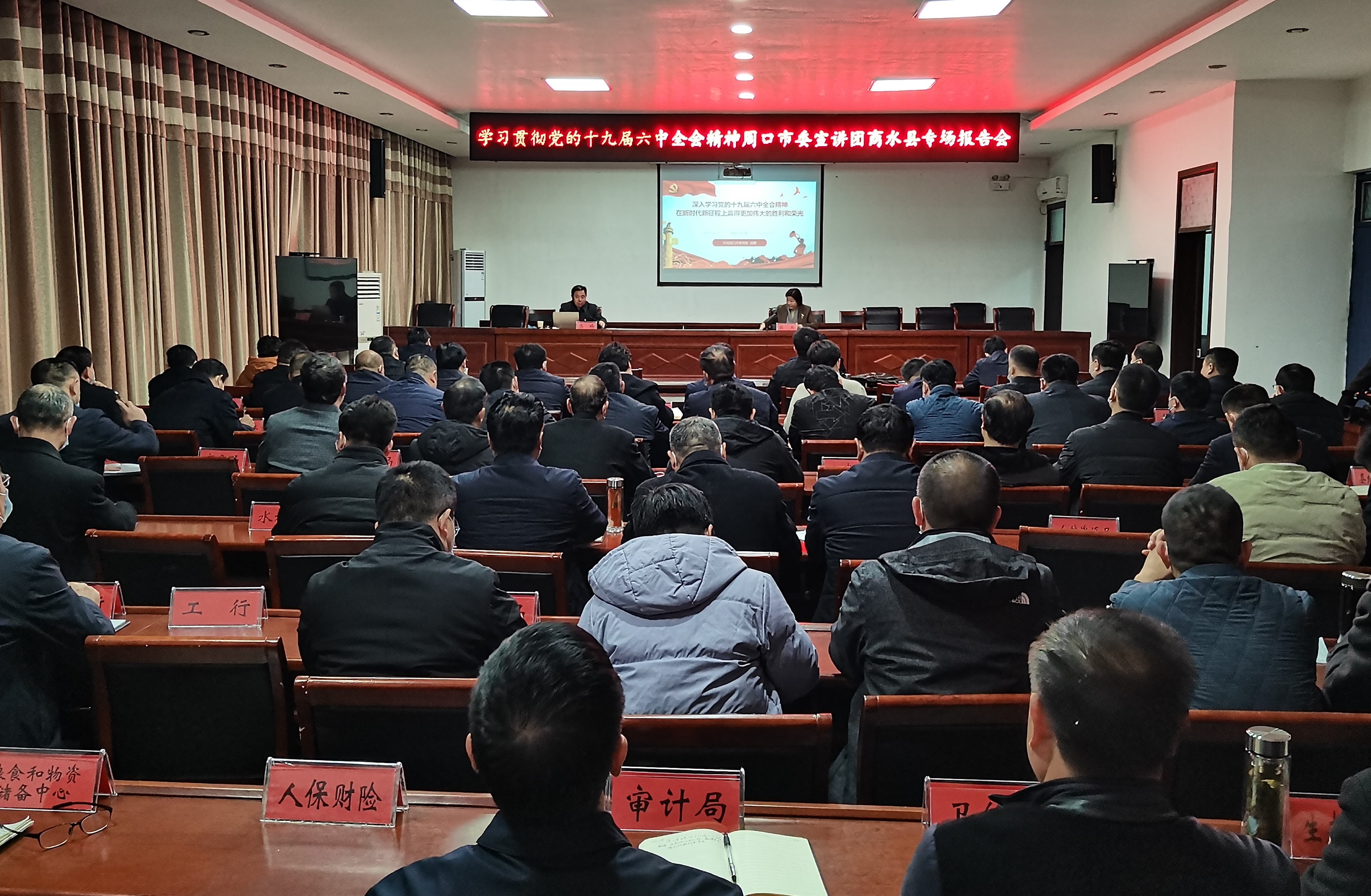 百年奮斗創(chuàng)輝煌,風(fēng)華正茂書華章。12月15日,學(xué)習(xí)貫徹黨的十九屆六中全會精神周口市委宣講團(tuán)商水縣專場報(bào)告會舉行,市委宣講團(tuán)成員高鵬作專題宣講報(bào)告,縣領(lǐng)導(dǎo)、鄉(xiāng)鎮(zhèn)辦事處和縣直單位主要負(fù)責(zé)人現(xiàn)場聆聽。