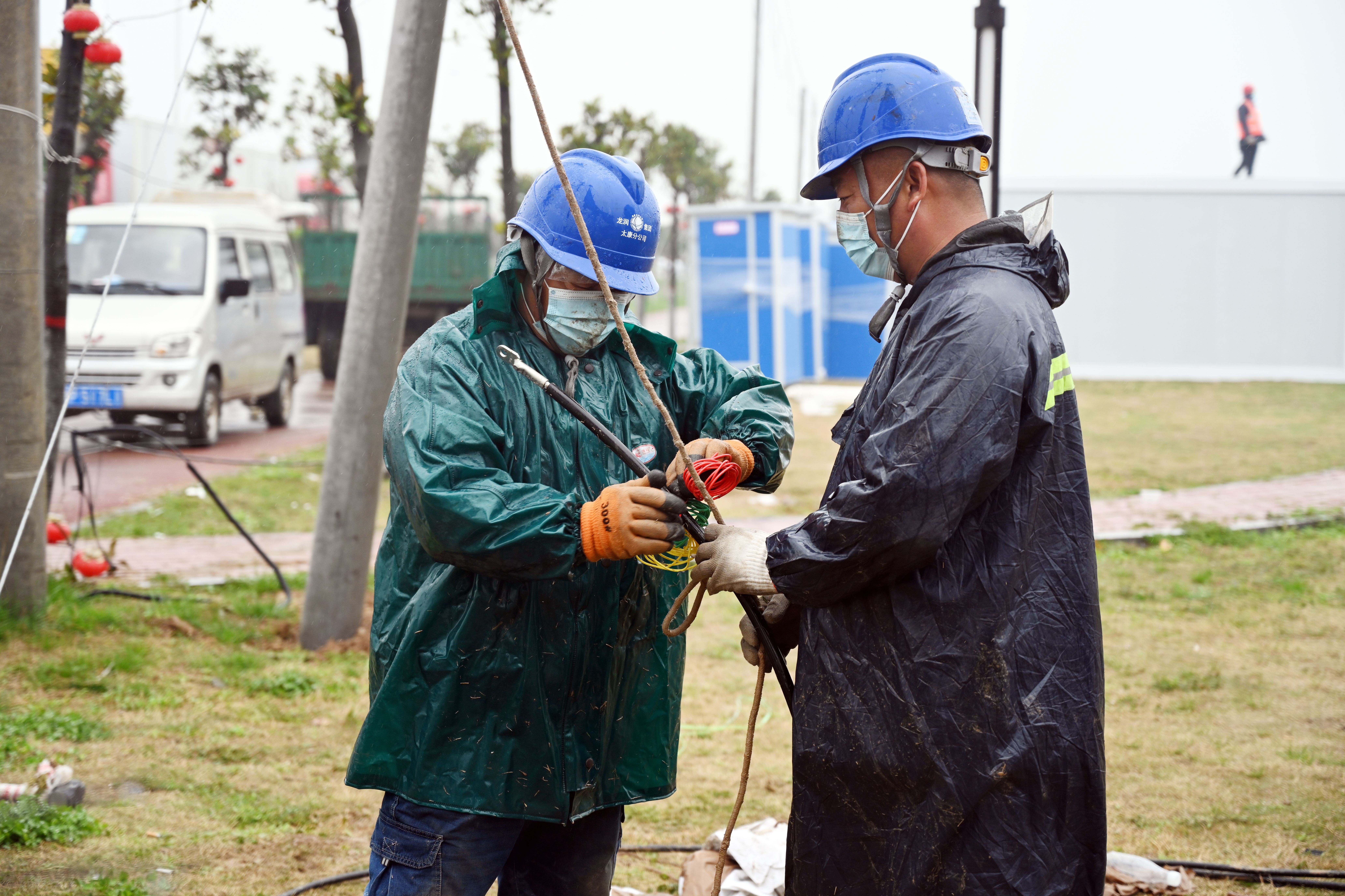 為做好疫情防控應(yīng)急準備,太康縣政府啟動建設(shè)核酸檢測方艙和隔離方艙。國網(wǎng)太康縣供電公司接到供電緊急任務(wù)后,立即召開會議,討論電力保障系統(tǒng)建設(shè)方案。公司總經(jīng)理馬攀、黨委書記祁淑慧、副總經(jīng)理趙明等領(lǐng)導(dǎo)前往現(xiàn)場勘察具體情況,迅速與政府相關(guān)部門和建設(shè)方取得聯(lián)系,了解用電需求,細化保電方案, 制定詳細的施工方案。組織人員克服天氣寒冷、路面泥濘等困難,連夜冒雨開展工作,采取輪班作業(yè),不間斷連續(xù)施工,全力保障抗疫用電需求。③6