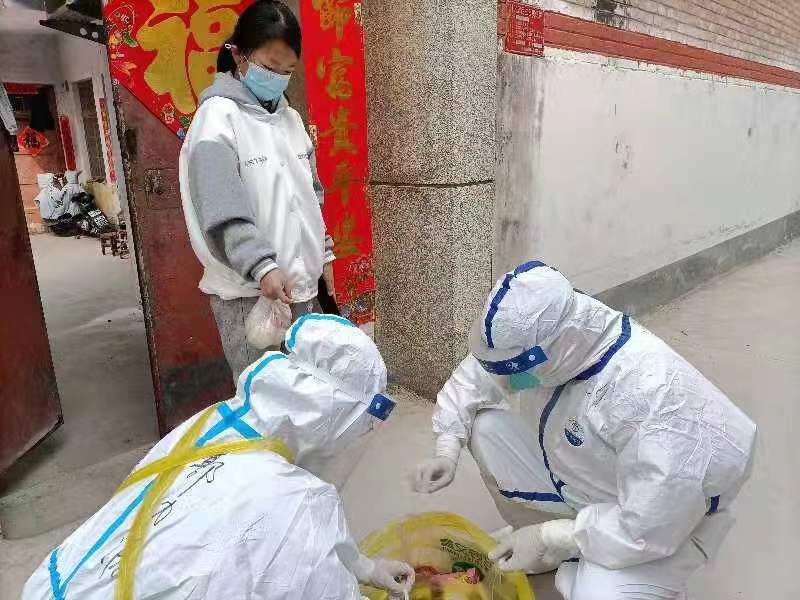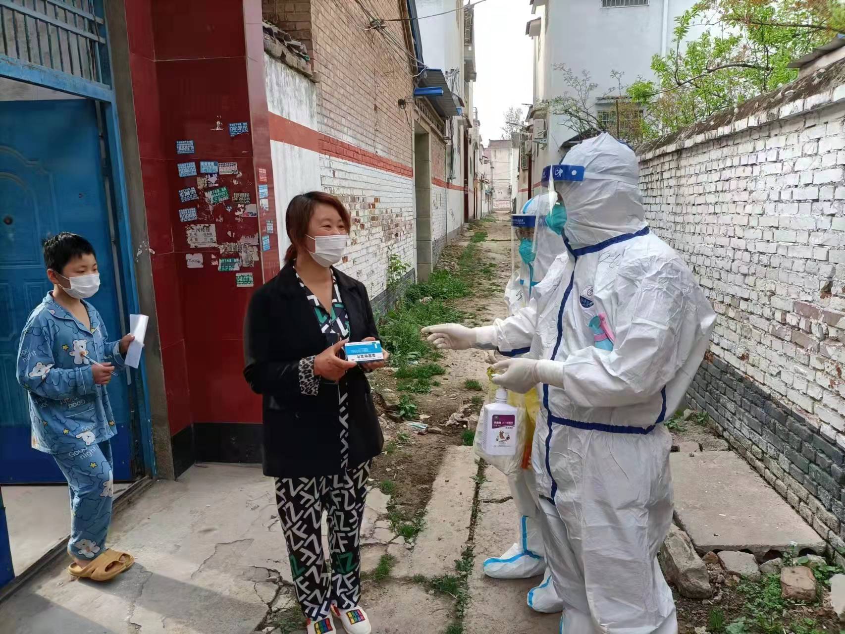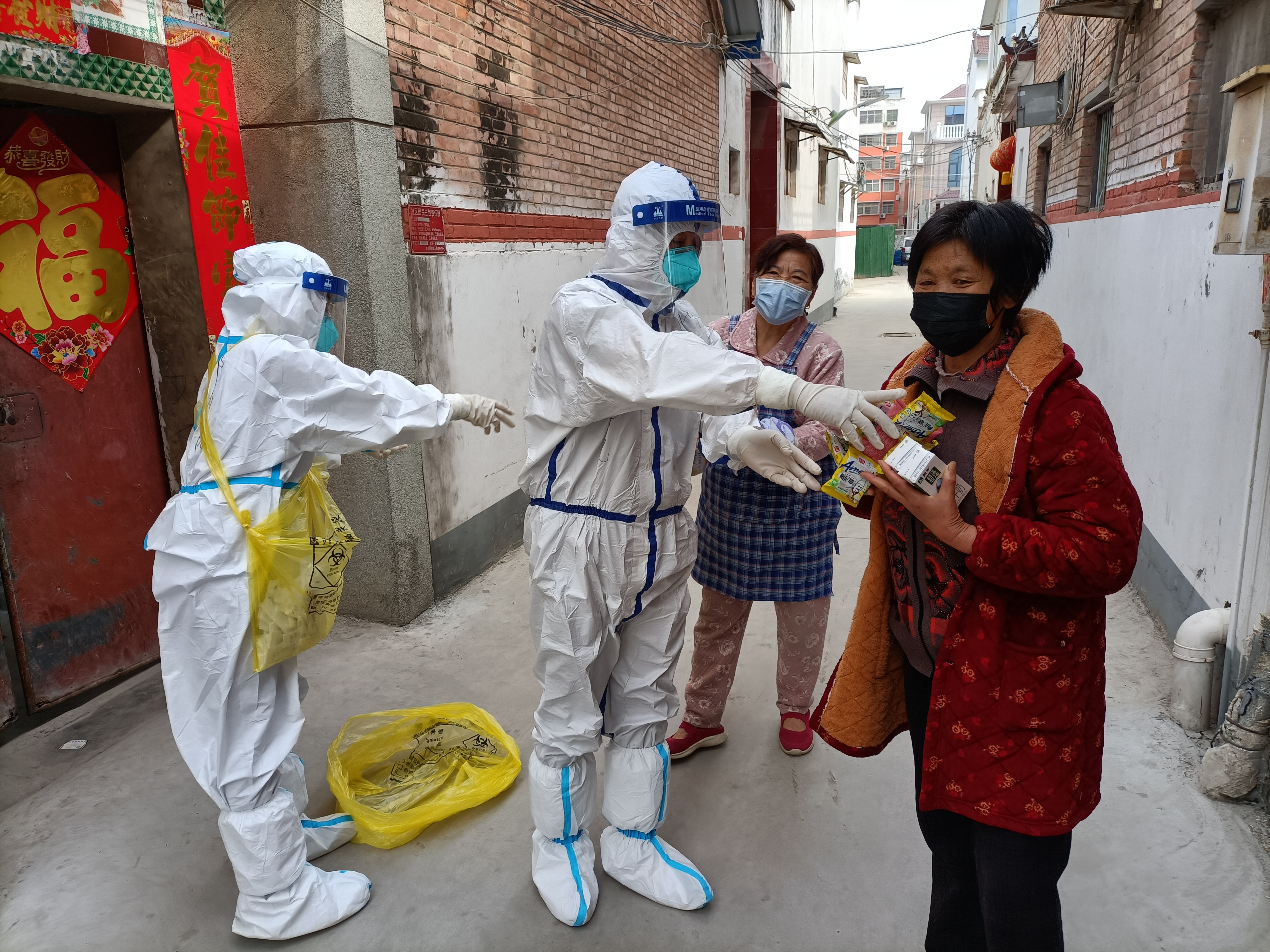 到達太康后,王群禮被分到了城關(guān)回族鎮(zhèn)封控區(qū)進行入戶核酸采集,當(dāng)時的他也很緊張,認(rèn)真地穿防護服,熟記采集核酸的每一個動作要領(lǐng),然后投身抗疫最前線。在入戶采樣的時候,王群禮發(fā)現(xiàn)有一個小女孩獨自在家,她每次聽到敲門聲都是先開一點縫,悄悄觀察外面,當(dāng)看到是防疫人員時,才慢慢打開門。“我可以看出她的恐懼和無助,不知道她晚上怕不怕,會不會做飯,問她怎么吃飯,她也不說話,我心里很不是滋味?!睆哪翘扉_始,王群禮每次入戶采核酸的時候,就幫她帶點吃的,王群禮會把他的早餐留給她,還把自己的水果、零食也都送給她。