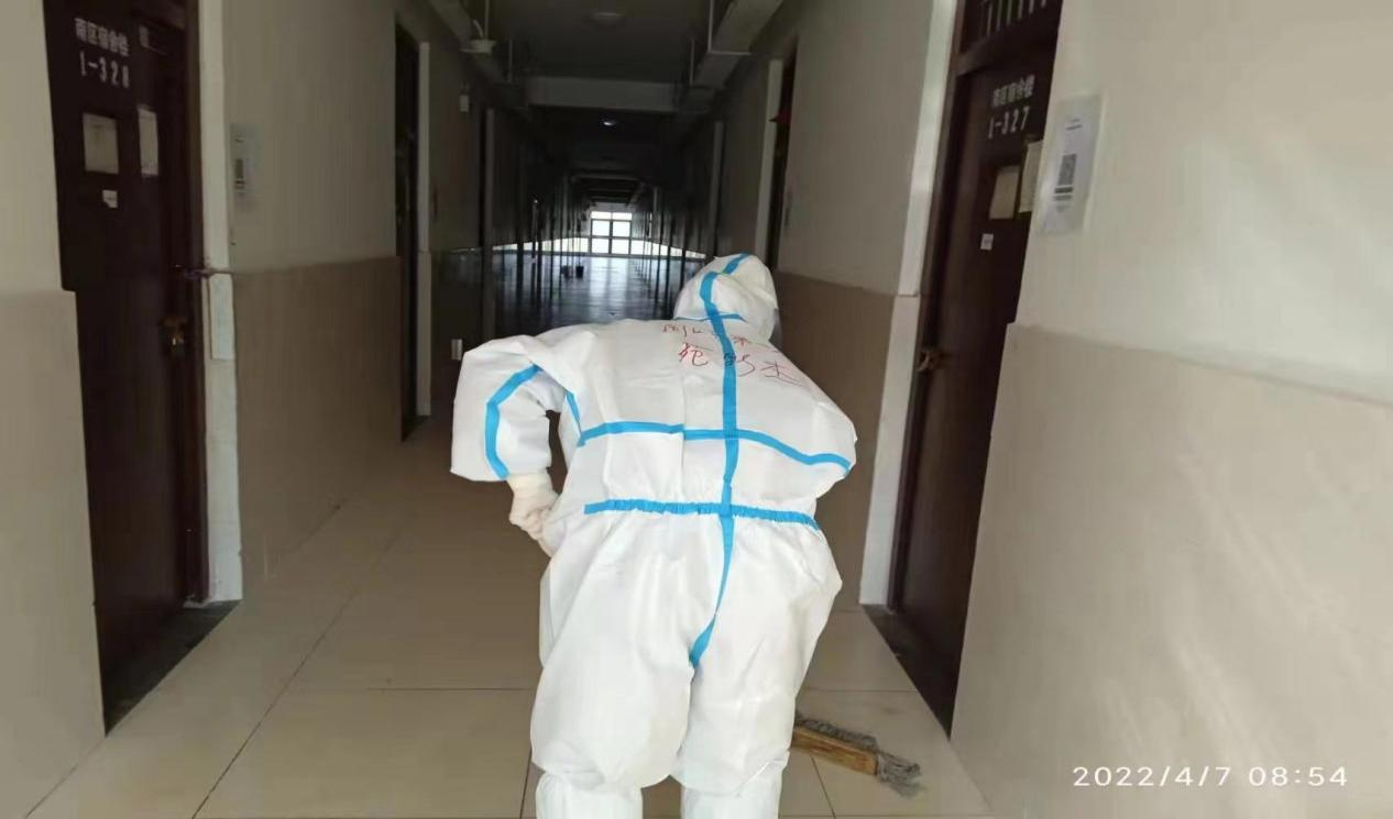到了隔離點后,苑影杰才知道,為減少人員流動,隔離點配備的醫(yī)務(wù)工作人員比較少,每位進(jìn)駐的護(hù)理人員每天除了基本的護(hù)理工作,還要承擔(dān)為隔離點群眾送飯,清理隔離房間的衛(wèi)生等工作,工作量還是比較大的。為了減少防護(hù)用品的消耗,每天進(jìn)入隔離區(qū)工作都是四五個小時不吃不喝,一個班下來,全身透濕,臉、鼻子被防護(hù)服磨傷,口罩和護(hù)目鏡在臉上壓出來的印子,需要幾個小時才能消退。