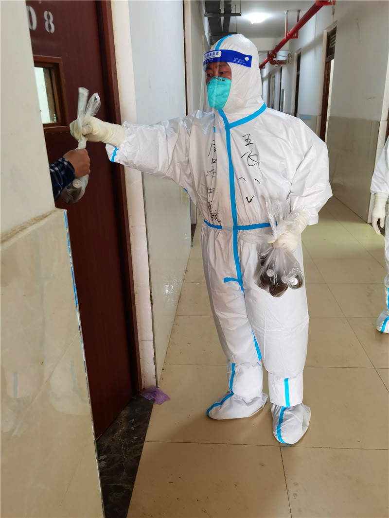 人手緊張的時(shí)候,王飛也會(huì)進(jìn)入隔離點(diǎn)和大家并肩作戰(zhàn)。他每天不分晝夜地工作,由于工作量大,每次完成工作都是晚上十一點(diǎn)多,甚至更晚。隊(duì)員有需求,王飛隨叫隨到,千方百計(jì)幫助解決問題,幾乎每天都在超負(fù)荷工作。
