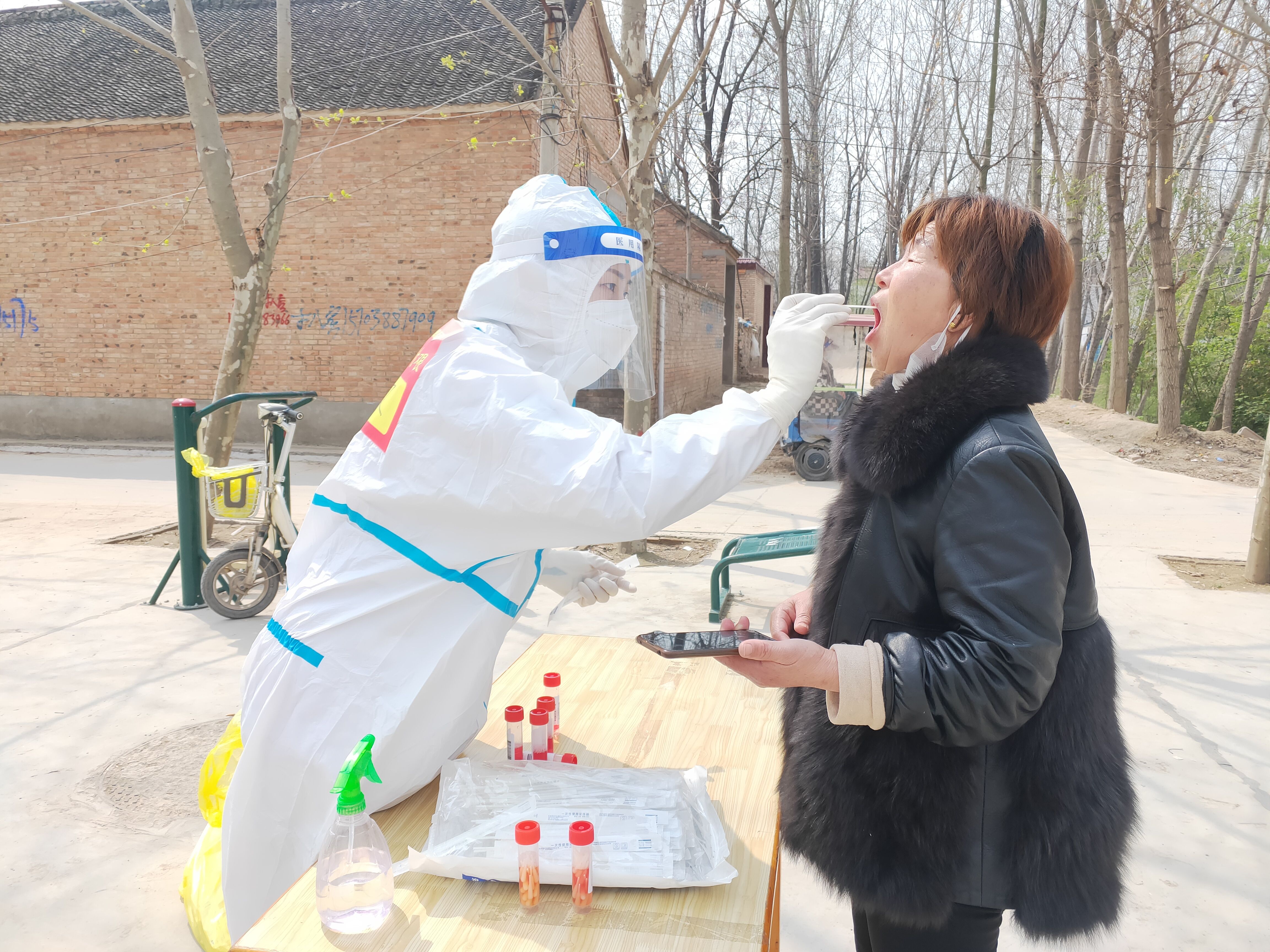 王文文和同事們于當(dāng)日早7點(diǎn)到達(dá)太康廣場進(jìn)行培訓(xùn)。培訓(xùn)結(jié)束后,在對接人的引領(lǐng)下,王文文帶領(lǐng)分隊(duì)46人前往太康縣張集鎮(zhèn)開展支援工作,主要負(fù)責(zé)張集鎮(zhèn)15個自然村,每日對近2萬名群眾進(jìn)行核酸采集,他們分為15個組,一組負(fù)責(zé)一個采集點(diǎn)。第一天大家都沒有經(jīng)驗(yàn),工作中,王文文不時接到其他組隊(duì)員的咨詢電話,王文文詳細(xì)地為他們一一解答,保證工作順利開展。