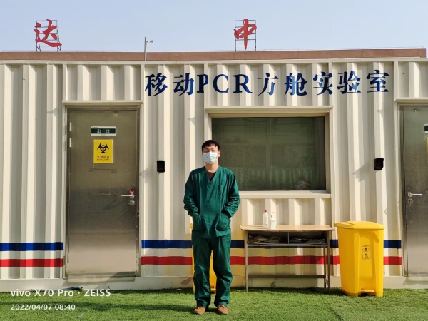 他積極主動(dòng)參與各項(xiàng)工作,在太康方艙實(shí)驗(yàn)室的那段時(shí)間,陸續(xù)來(lái)了兩批新同事對(duì)機(jī)器及操作流程不熟悉,他積極主動(dòng)幫助他們以最快的速度適應(yīng)新環(huán)境。由于方艙特殊的工作環(huán)境(負(fù)壓條件),他們必須穿著厚厚的防護(hù)服,忍著負(fù)壓帶來(lái)的身體不適,在艙內(nèi)一忙就是六七個(gè)小時(shí),出艙時(shí)身上一身汗,面部被口罩勒出一道道印痕。由于每天檢測(cè)任務(wù)繁重,工作量大,有一部分同事心情低落。他會(huì)安慰大家,用他樂(lè)觀的性格影響著周邊的同事。檢驗(yàn)人并不直接接觸患者,但是他們的檢測(cè)結(jié)果報(bào)告是鑒別疫情最重要的診斷依據(jù),盡快盡早地提供準(zhǔn)確的檢驗(yàn)結(jié)果報(bào)告是至關(guān)重要的。惟其艱難方顯勇毅,惟其篤行方顯珍貴。劉歡是很多檢驗(yàn)人員的縮影,在這個(gè)平凡的崗位上,他們默默奉獻(xiàn)、任勞任怨、辛勤耕耘、艱苦奮斗。雖然他們沒(méi)有豪言壯語(yǔ),沒(méi)有驚天動(dòng)地的業(yè)績(jī),但正是他們毫不退縮、勇?lián)?zé)任、踐行使命,才保障了一方百姓的健康安全。③9