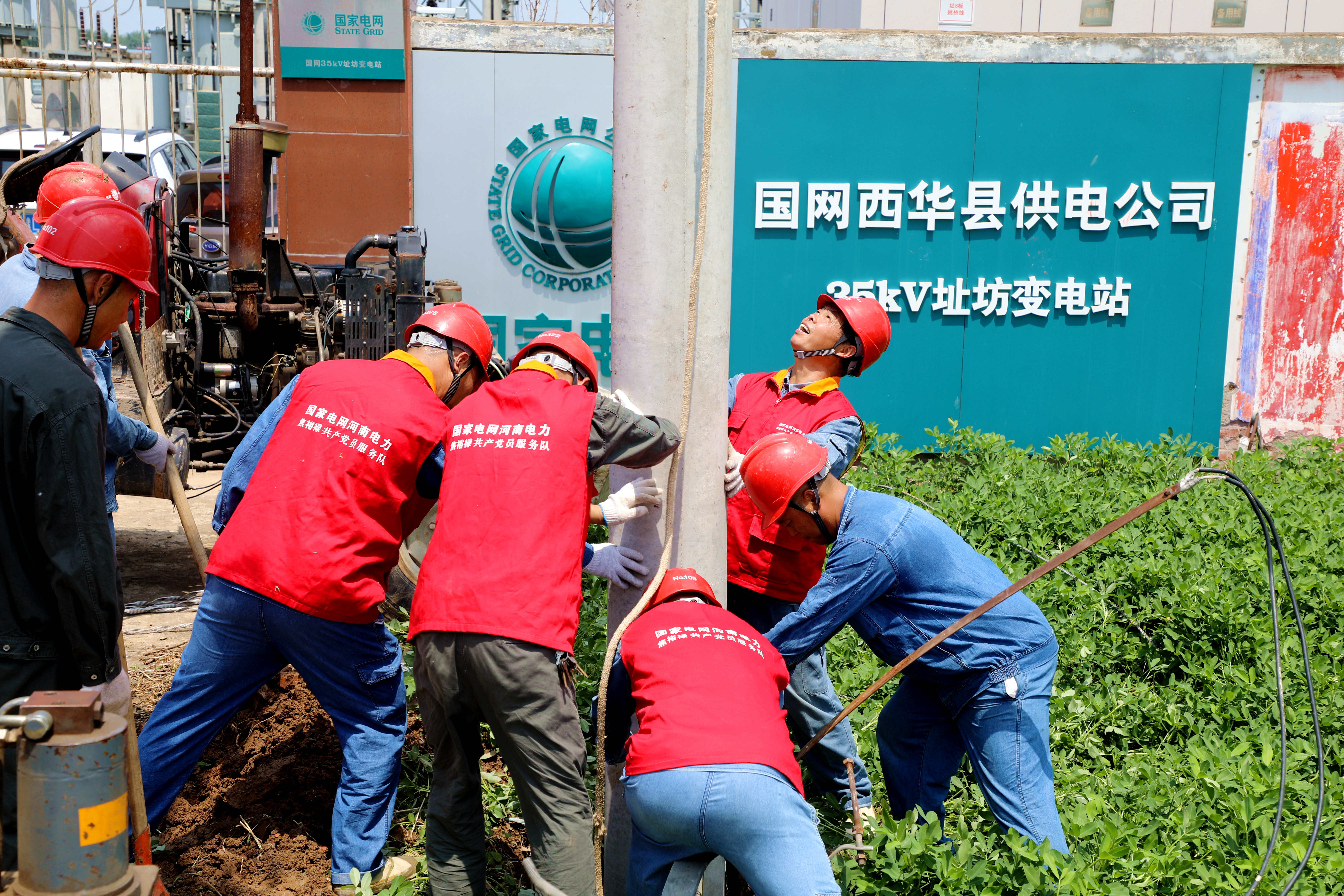 在35千伏址坊變電站10千伏灣張線出線倒桿緊急搶修現(xiàn)場(chǎng),焦裕祿共產(chǎn)黨員服務(wù)隊(duì)沖在最前線,戰(zhàn)高溫、斗酷暑,將原電桿位置遷移,在安全地點(diǎn)重新立桿接線,高效完成牽引、挖坑、立桿、填土、鞏固、緊線等搶修工序。經(jīng)過連續(xù)奮戰(zhàn),7月26日20時(shí)06分因?yàn)?zāi)停電線路全面恢復(fù)供電。③9