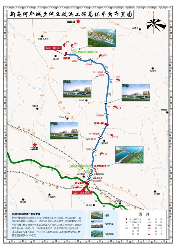 記者了解到,規(guī)劃中的鄲城港區(qū)是以新蔡河為依托,通過分析論證,確定其位置在新蔡河航運(yùn)工程航道起點(diǎn)鄲城縣錢店鎮(zhèn),航道終點(diǎn)為沈丘縣新安集沙潁河口,航道里程31公里。航道通航標(biāo)準(zhǔn)為限制性Ⅳ級(jí),設(shè)計(jì)船舶為500噸級(jí)。航道底寬40米,最小設(shè)計(jì)水深3.1米,最小彎曲半徑320米。船閘按照Ⅳ級(jí)船閘標(biāo)準(zhǔn)建設(shè)。沿線建設(shè)沈丘港區(qū)新安集、鄲城港區(qū)錢店兩個(gè)作業(yè)區(qū),設(shè)計(jì)500噸級(jí)泊位8個(gè),改建礙航橋梁標(biāo)準(zhǔn)9座。初步估算,工程總投資19.4億元。