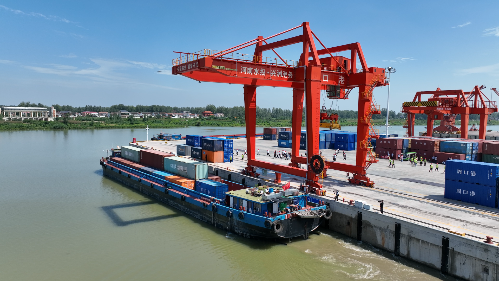 周口港區(qū)黨委委員杜廣賢表示,來自浙江杭州的外貿(mào)企業(yè),在周口辦廠,得益于航運的便利條件,節(jié)約了大筆成本,為周口承接長三角地區(qū)產(chǎn)業(yè)轉(zhuǎn)移提供了一個典型的范例。新航線的開通,標(biāo)志著周口港走向世界的步伐越來越快,影響力越來越大,標(biāo)志著我市內(nèi)河航運事業(yè)邁上了新的臺階、開啟了新的征程,把河南與世界的距離拉得更近,助推河南外向型經(jīng)濟快速發(fā)展。下一步,周口中心港在做好現(xiàn)有國際國內(nèi)集裝箱航線運營的同時,將加強與國內(nèi)大型港口的合作,積極推進(jìn)開通至迪拜、泰國曼谷等國際航線,開通鄭州中歐班列至太倉港、上海、蘇州等水上航線,進(jìn)一步推動外貿(mào)集裝箱業(yè)務(wù)的高速發(fā)展,為建設(shè)“臨港新城 開放前沿”貢獻(xiàn)港區(qū)力量。③6