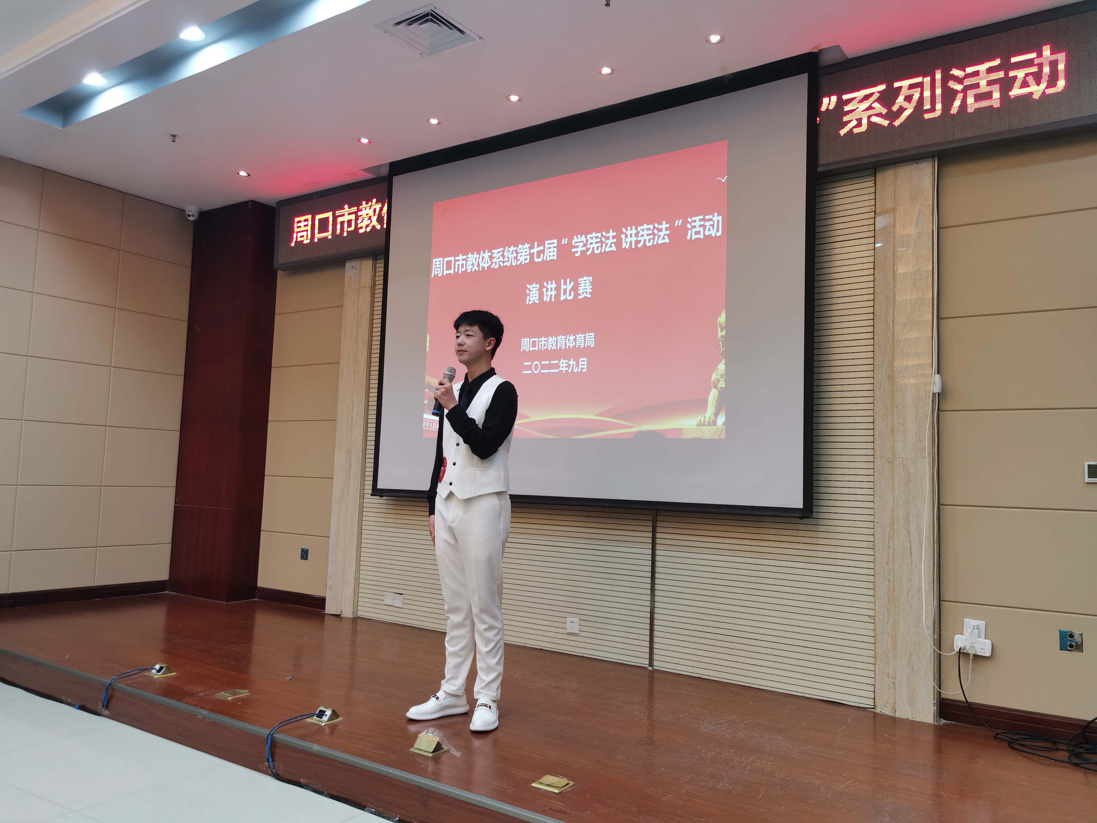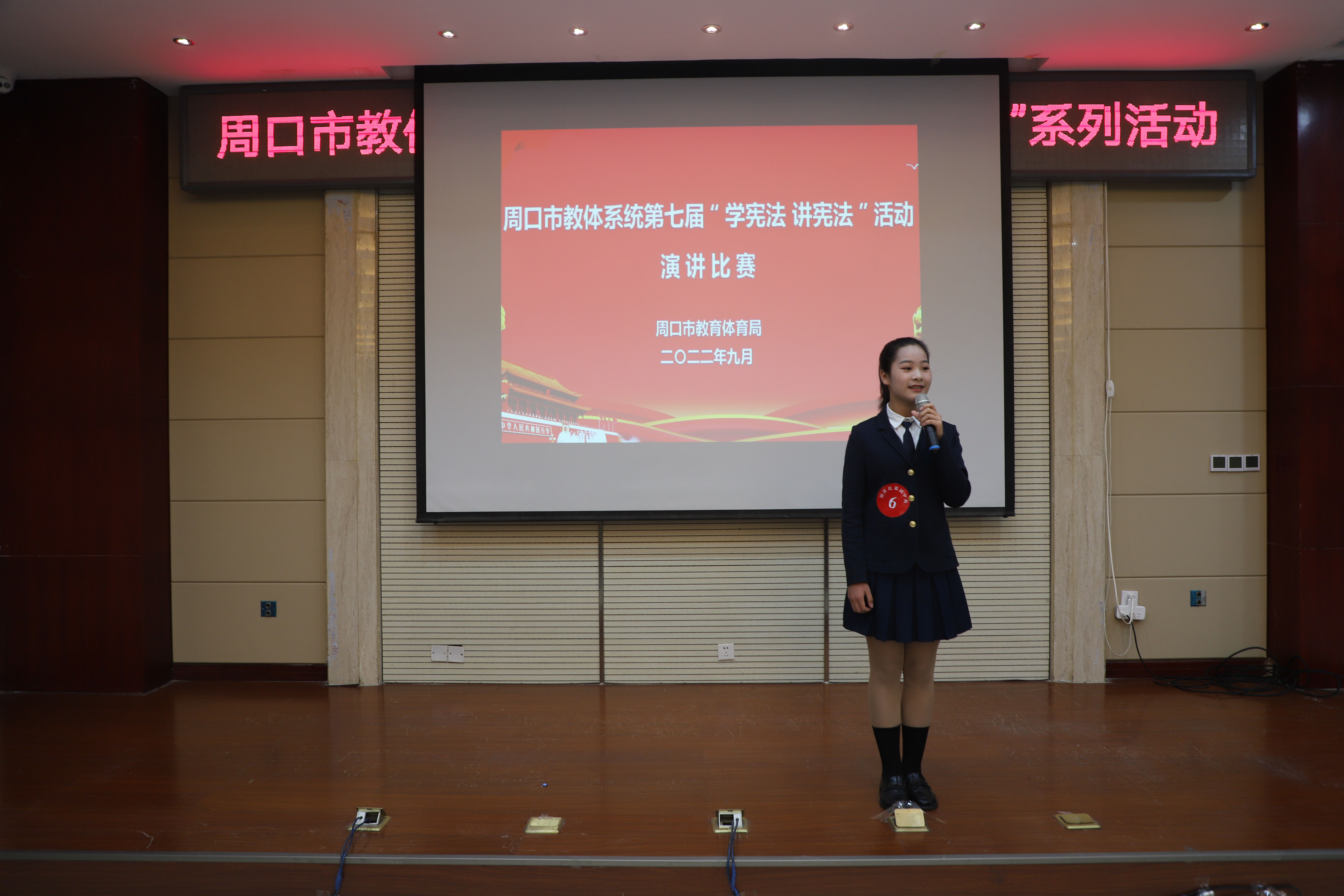 為進(jìn)一步弘揚(yáng)憲法精神,推進(jìn)廣大中小學(xué)生憲法學(xué)習(xí)教育活動(dòng),增強(qiáng)師生法治意識(shí),豐富師生法治知識(shí),9月21日,由周口市教體局主辦的第七屆中小學(xué)生“學(xué)憲法 講憲法”演講比賽和知識(shí)競(jìng)賽舉行。