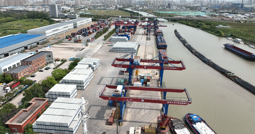 繁忙的淮安港。在自動(dòng)化集裝箱碼頭,貨船頻繁進(jìn)出,集裝箱不斷被起重機(jī)吊起、裝運(yùn),繁榮忙碌而又秩序井然。據(jù)了解,目前淮安全市碼頭岸線28公里,港區(qū)7個(gè)、碼頭116座、泊位389個(gè),其中千噸以上泊位92個(gè),年設(shè)計(jì)吞吐能力1.1億噸,其中集裝箱碼頭吞吐能力50萬(wàn)標(biāo)箱。2021年,淮安被交通運(yùn)輸部確定為“全國(guó)內(nèi)河主要港口”。運(yùn)行內(nèi)河集裝箱航線14條,上游覆蓋河南周口、山東、湖北、安徽等地,下游通達(dá)銜接江蘇沿江沿海、上海等地。2021年完成集裝箱吞吐量31.07萬(wàn)標(biāo)箱。