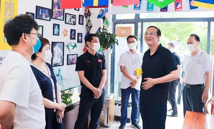 2022年7月,河南省體育局局長萬旭(右二)一行走訪鄭州市中國體育彩票實體店