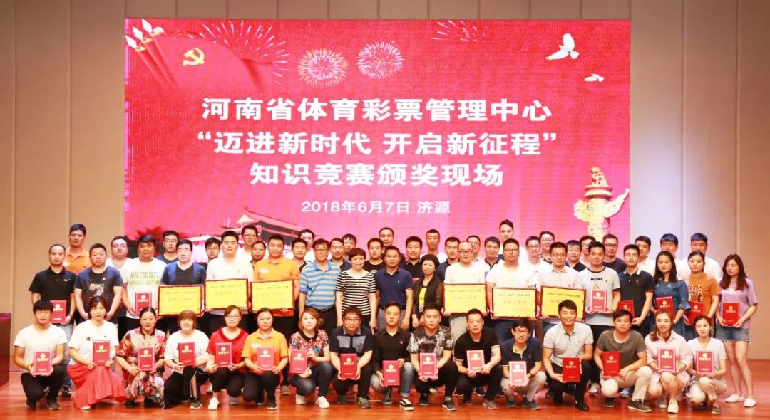 2018年6月,河南省體彩中心“邁進新時代 開啟新征程”知識競賽頒獎現(xiàn)場