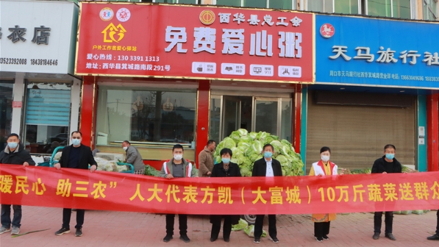 “中國(guó)好人”、周口市人大代表方凱幫助黃橋鄉(xiāng)菜農(nóng)解決蔬菜滯銷難題,并通過(guò)西華縣紅十字會(huì)向這些單位捐贈(zèng)10萬(wàn)斤蔬菜,讓滯銷菜變“暖心菜”。方凱的這一舉動(dòng),受到群眾的稱贊。