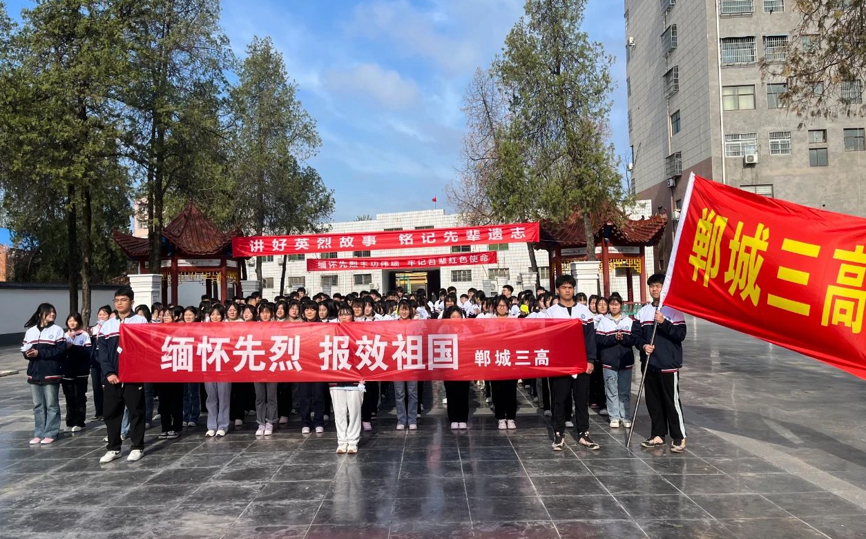 當(dāng)日上午,鄲城縣第三高級中學(xué)為悼念革命烈士,緬懷先烈的豐功偉績,教育學(xué)生弘揚(yáng)民族精神,加強(qiáng)愛國主義教育,組織師生到鄲城縣烈士陵園開展“清明祭英烈 ”為主題的清明節(jié)祭掃活動(dòng)。