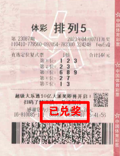 中獎(jiǎng)當(dāng)天,購(gòu)彩者和往常一樣來到店里,對(duì)著店內(nèi)的歷史開獎(jiǎng)號(hào)碼研究了一會(huì)兒,果斷選擇了定位復(fù)式進(jìn)行投注。據(jù)悉,中獎(jiǎng)?wù)邚埾壬ɑ┒嗄陙眇B(yǎng)成購(gòu)買體育彩票小盤玩法排列型游戲的習(xí)慣,積累了豐富的購(gòu)彩經(jīng)驗(yàn),對(duì)該玩法有自己獨(dú)到的分析方法和見解,善于利用定位復(fù)式進(jìn)行購(gòu)買,購(gòu)彩多年,體育彩票排列型玩法給他帶來了多次中獎(jiǎng)驚喜和美好的購(gòu)彩體驗(yàn)。23087期,在經(jīng)過自己的仔細(xì)分析和判斷后,張先生第一位選定123,第二位選定23,第三位選定689,第四位選定27,第五位選定13,組合成為一張144元的排列5定位復(fù)式票,巧妙運(yùn)用自己獨(dú)特的選號(hào)技巧,幸運(yùn)命中當(dāng)期排列5一等獎(jiǎng)。