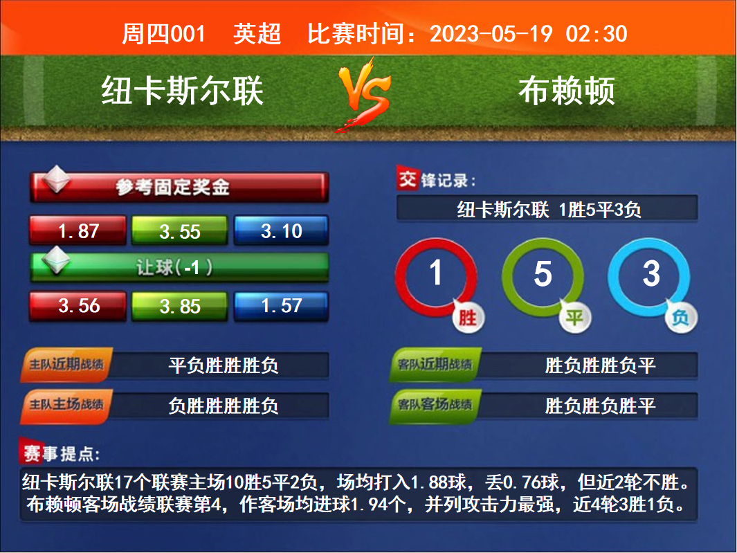 周四001 英超 紐卡斯爾聯(lián)VS布賴頓