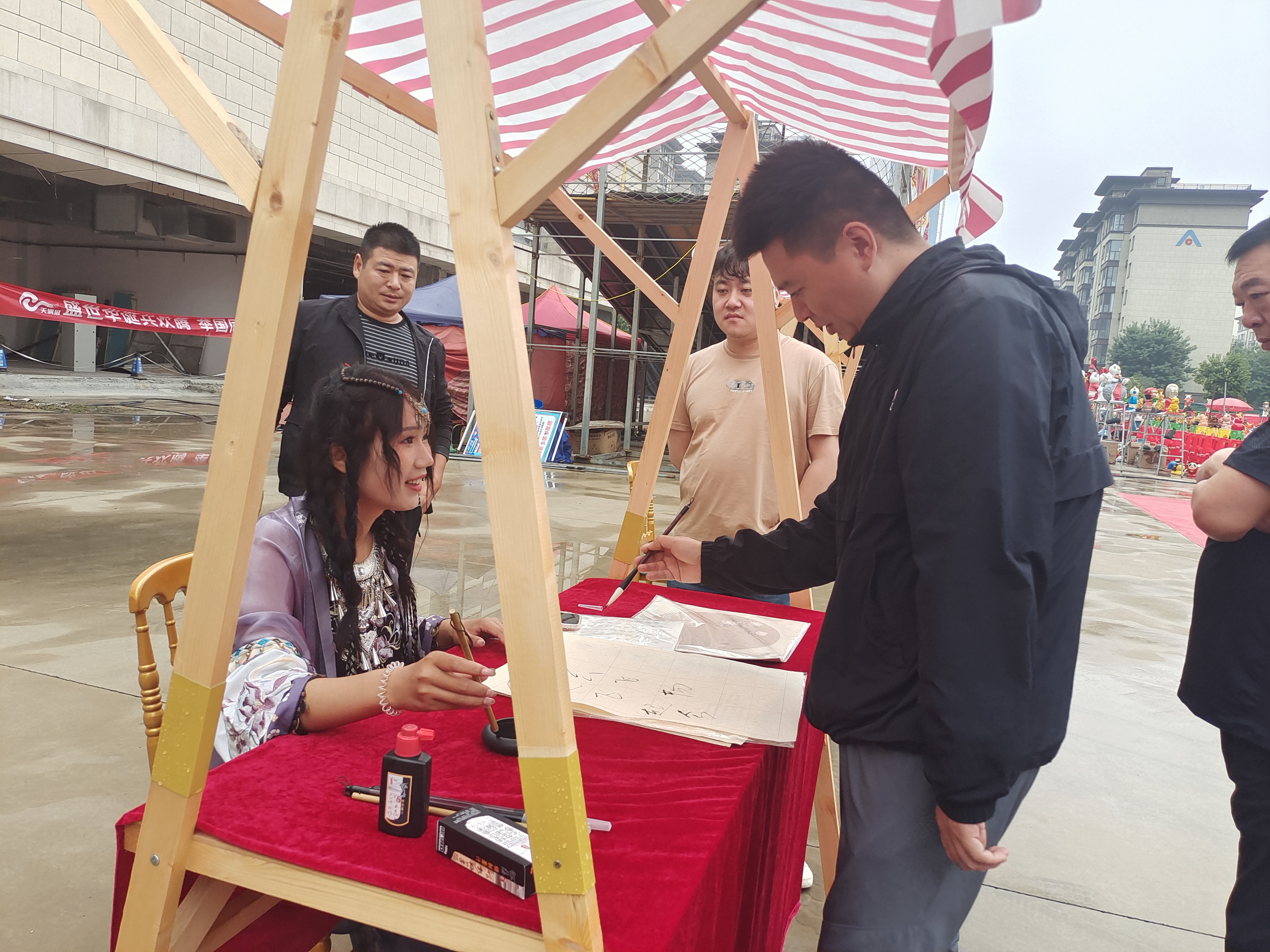 伴隨著開場(chǎng)舞《盛世歡歌》,“潮流雙節(jié)·中秋游園會(huì)暨國慶嘉年華”活動(dòng)啟動(dòng)儀式正式拉開帷幕。泥泥狗、剪紙、書法、繪制團(tuán)扇……現(xiàn)場(chǎng)工作人員有的身著少數(shù)民族服裝,有的身著漢服,用親手制作的方式展示著傳統(tǒng)非物質(zhì)文化遺產(chǎn)獨(dú)有的韻味,吸引著來往的大人小孩駐足。有的甚至親自參與制作,捏泥泥狗、寫毛筆字、畫傳統(tǒng)團(tuán)扇……現(xiàn)場(chǎng)歡笑不斷,大家在親自動(dòng)手的過程中充分感受著中國傳統(tǒng)節(jié)日的豐富文化內(nèi)涵。