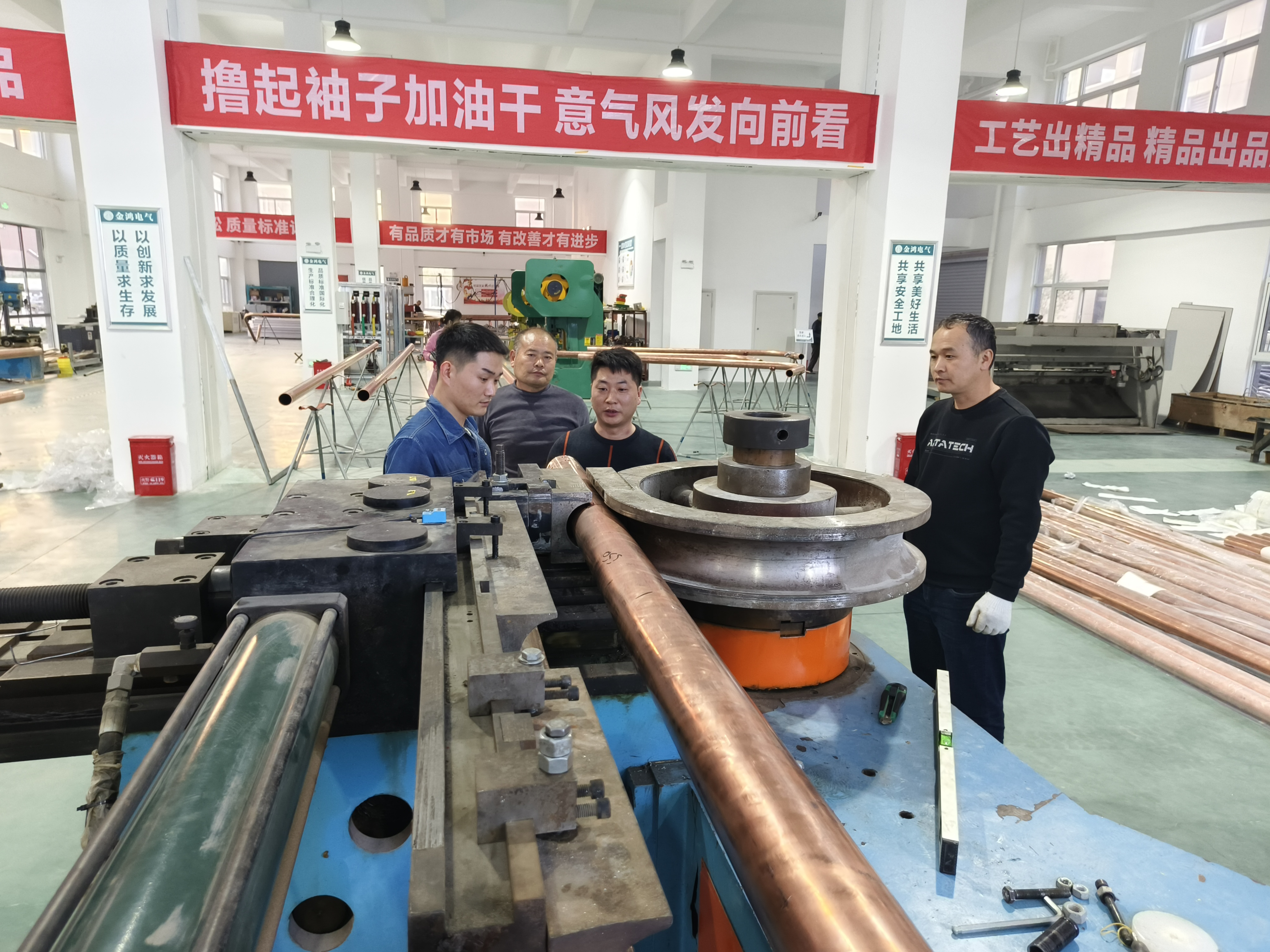 10月26日21時(shí),臨港開發(fā)區(qū)中興新業(yè)港產(chǎn)業(yè)園內(nèi),河南金鴻電氣有限公司(以下簡稱金鴻電氣)生產(chǎn)車間燈光明亮,十多位技術(shù)工人加班加點(diǎn),趕制重慶鋼廠訂購的一批絕緣銅管母線,11月初,這筆產(chǎn)品必須完成、送到。金鴻電氣總經(jīng)理苑福來說:“今年工廠邊建設(shè)邊生產(chǎn),預(yù)計(jì)年產(chǎn)值能達(dá)到1億元,為明年產(chǎn)能擴(kuò)張打下基礎(chǔ)。”