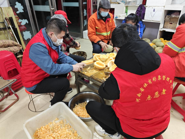 第二日早晨5點(diǎn),周口體彩4名志愿者來(lái)到“東方愛心粥屋”開展志愿服務(wù),洗菜、切菜、炒菜、熬粥……大家有條不紊地準(zhǔn)備著早飯?!拔覀儝叩仄鸬煤茉?,來(lái)到這吃碗熱粥,更有干勁了?!薄爸驹刚哒尜N心,熱粥熱菜的,感覺很幸福。”正在吃早飯的環(huán)衛(wèi)工人你一言我一語(yǔ)、贊聲一片。