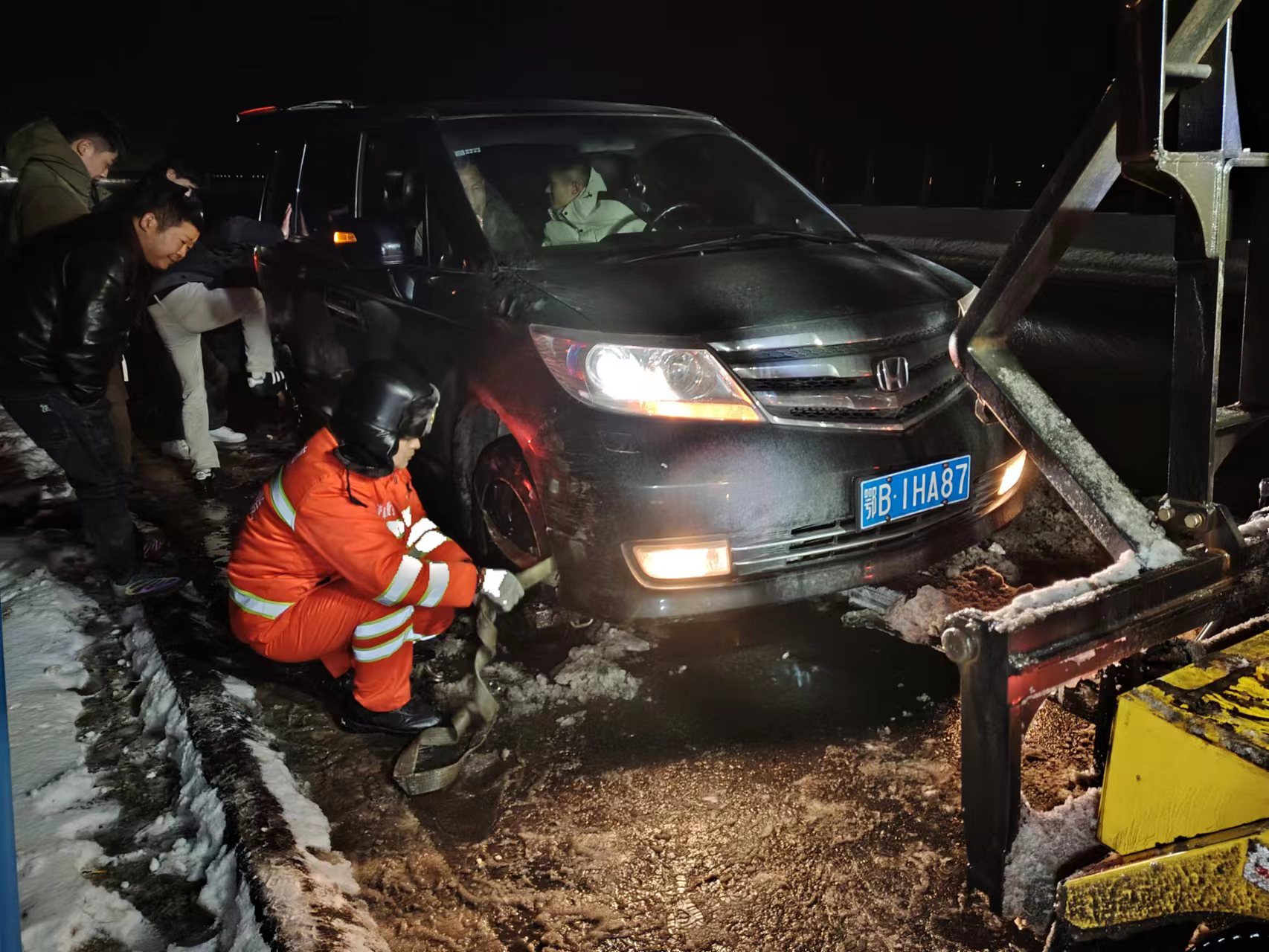 開展“情滿旅途、暖心春運”活動,實行全員駐站,黨員干部下沉一線、靠前指揮;組建黨員突擊隊,設立黨員先鋒崗、志愿服務臺,開展志愿服務,儲備棉大衣2000件、瓶裝水1000件、方便面1200箱、火腿腸500箱、熱水壺500個等應急物資,為司乘提供熱水、維修工具、路況指引、充電器、救助司乘,開辟生命綠色通道,巡邏車開道與時間賽跑,緊急護送危重病人,打通生命救援通道,確保司乘人員“不凍著、不餓著、不滯留”。