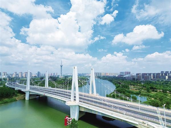 7月25日,藍(lán)天白云映襯下,周口市七一路跨沙潁河大橋以“揚帆出?!钡莫毺卦煨停鷦诱宫F(xiàn)了這座中原港城的雄心。作為河南“豫貨出海”的橋頭堡,周口正肩負(fù)起港口型國家物流樞紐承載城市的重任,推動“經(jīng)濟(jì)通道”邁向“通道經(jīng)濟(jì)”,實現(xiàn)高質(zhì)量發(fā)展。