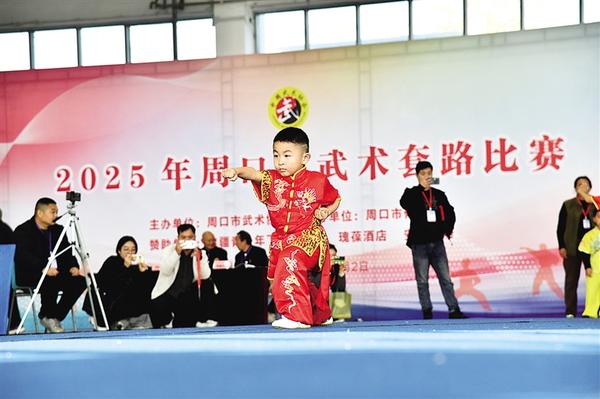 11月1日上午,小朋友展示長拳。當日,由周口市武術協(xié)會主辦、周口市體育中心協(xié)辦的“2025年周口市武術套路比賽”在周口市體育中心開賽,來自全市不同武術門派和拳種的43支代表隊的千名武術愛好者參與套路、器械等比賽,他們的扎實功底和不同風格的拳術展示贏得陣陣喝彩,展示了我市武術發(fā)展的成果。記者 梁照曾 攝
