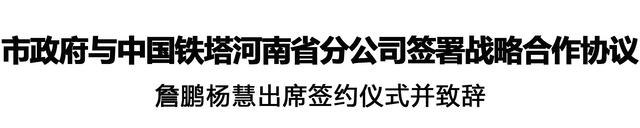 詹鵬代表市委、市政府對中國鐵塔河南省分公司長期以來給予周口經(jīng)濟社會的支持表示衷心感謝。他說,近年來,周口深入落實習近平總書記關于加快新型基礎設施建設、推進數(shù)字經(jīng)濟發(fā)展的重要指示精神,搶抓數(shù)字化變革機遇,加快數(shù)字周口建設,一體推進數(shù)字技術與實體經(jīng)濟、城市管理、社會治理融合,走出了一條符合周口實際、具有地方特色的數(shù)字化轉(zhuǎn)型之路。河南鐵塔作為全省信息基礎設施建設的主力軍、數(shù)字經(jīng)濟創(chuàng)新發(fā)展的排頭兵,與周口有著良好合作基礎,近萬座5G基站織就了一張覆蓋城鄉(xiāng)的通信網(wǎng)絡,推動“通信塔”向“社會塔”“數(shù)字塔”轉(zhuǎn)變,為周口經(jīng)濟社會發(fā)展、平安建設作出了積極貢獻。