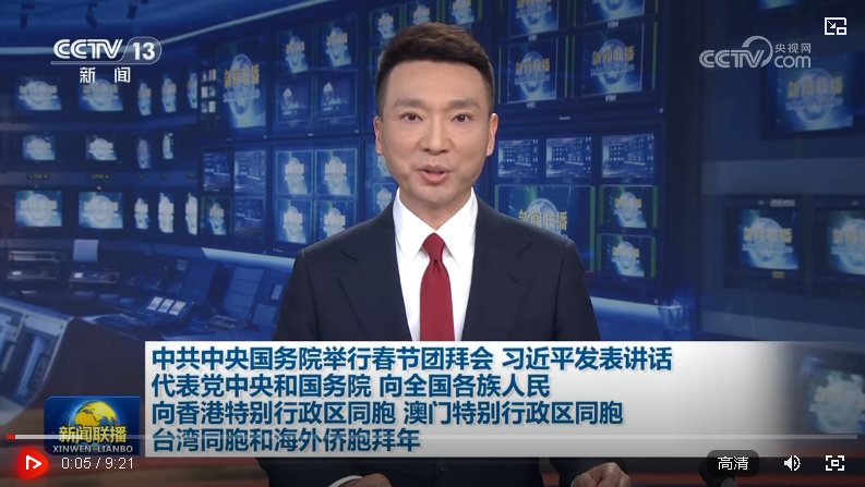 代表黨中央和國務院,向全國各族人民,向香港特別行政區(qū)同胞、澳門特別行政區(qū)同胞、臺灣同胞和海外僑胞拜年