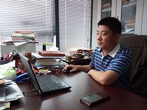 經(jīng)過近1個小時的車程,記者一行來到北京市大興區(qū),在一座寫字樓里,見到了一位中等身材、穿著樸素、精明干練的中年人。他就是我們此行的采訪對象——來自項城市孫店鎮(zhèn)龔堂村的"防水人"龔富強。