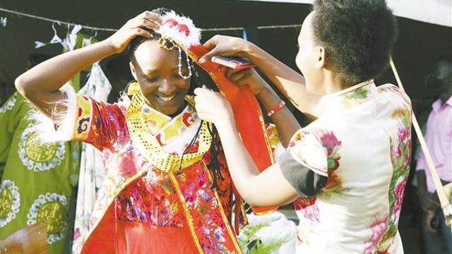 11月10日,學(xué)生在盧旺達(dá)卡永扎試穿中國服飾?!?a href="http://nysmokeshops.com/content/2021-11/13/content_959142.html" target="_blank" >[詳細(xì)]