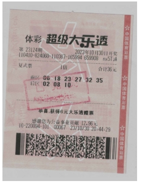 10月30日,體彩大樂透第23124期開獎。當(dāng)期開獎號碼為前區(qū):06、18、23、27、32,后區(qū):06、10。位于周口市西華縣4116220094體彩實(shí)體店傳出喜訊,購彩者馬先生喜中大樂透二等獎,斬獲獎金9.6萬元。